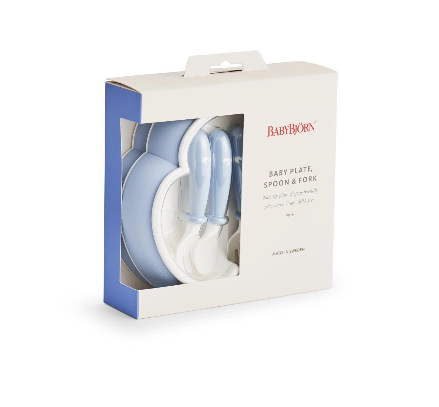 - BABYBJORN - talerzyki ze sztućcami, które ułatwiają samodzielne jedzenie. Stabilny talerzyk BABYBJORN, który ciężko wywrócić. Łyżka oraz widelec BABYBJORN idealnie pasują do małych rączek. Zestaw do jedzenia BABYBJORN można myć w zmywarce