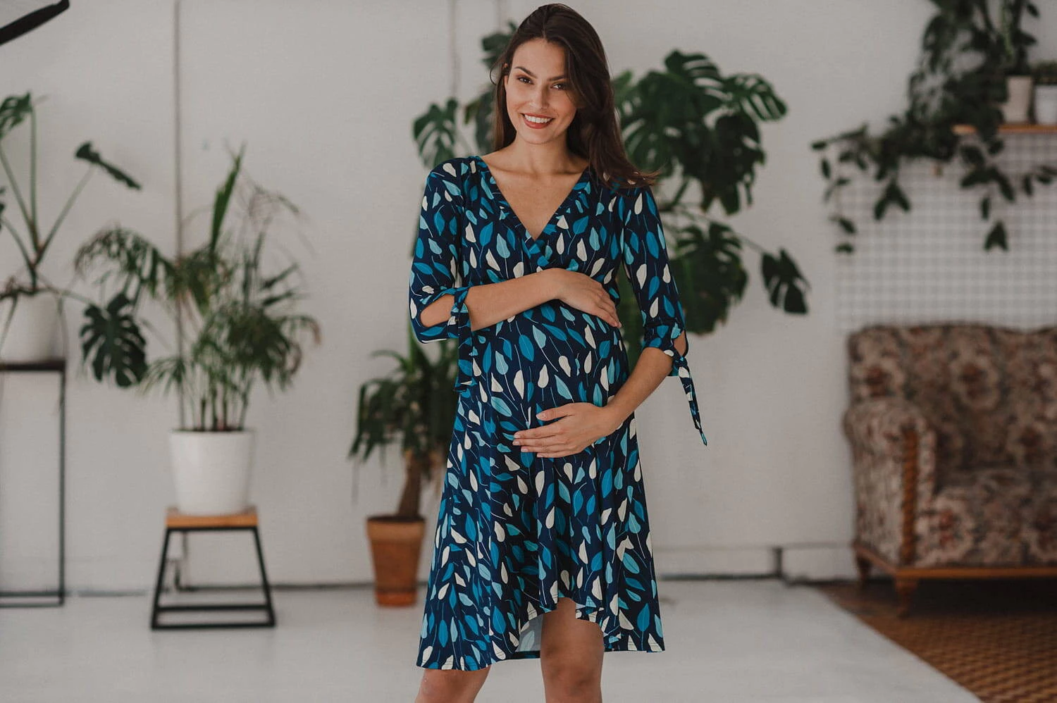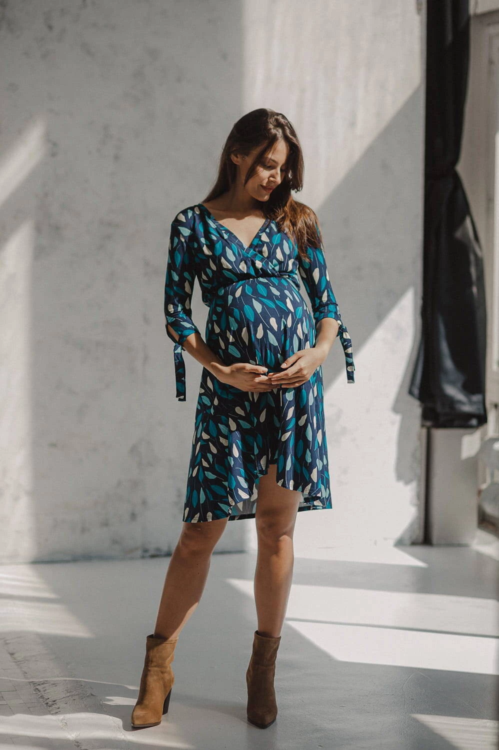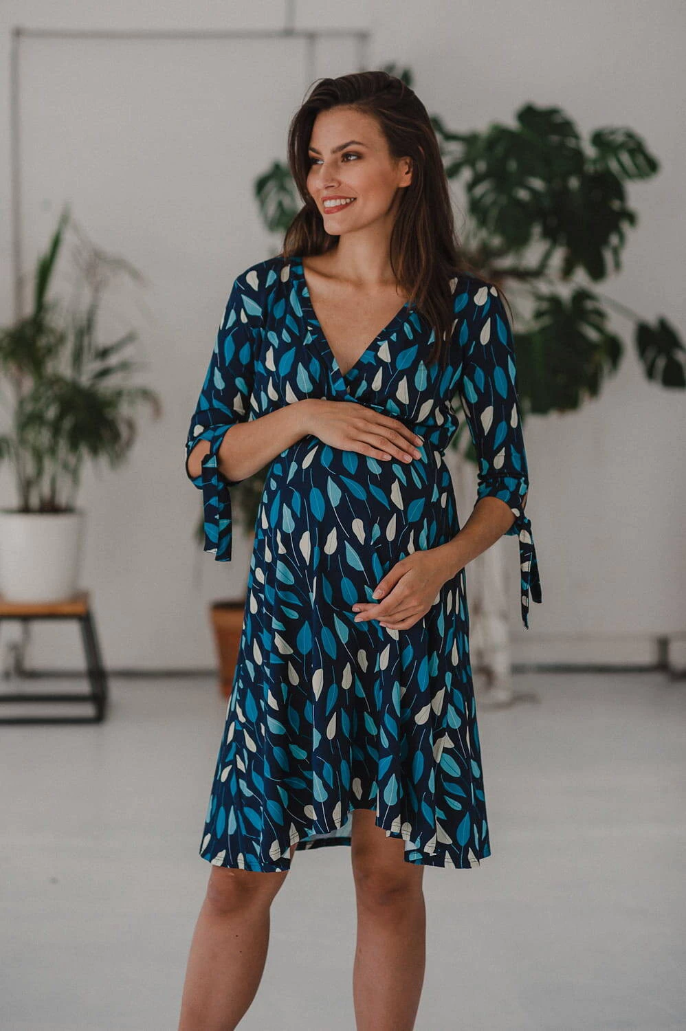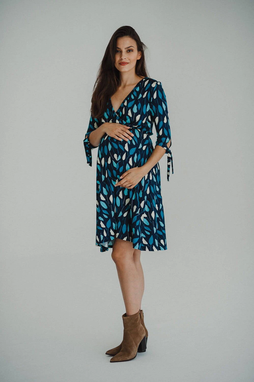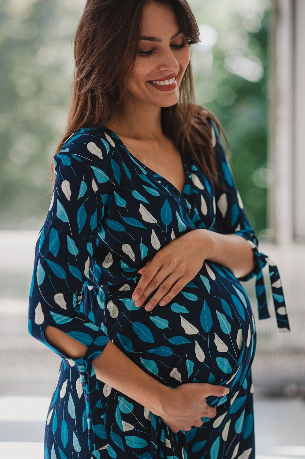 Sukienka ciążowa i do karmienia Two Ways MIDI rękaw 3/4 granatowa w listki