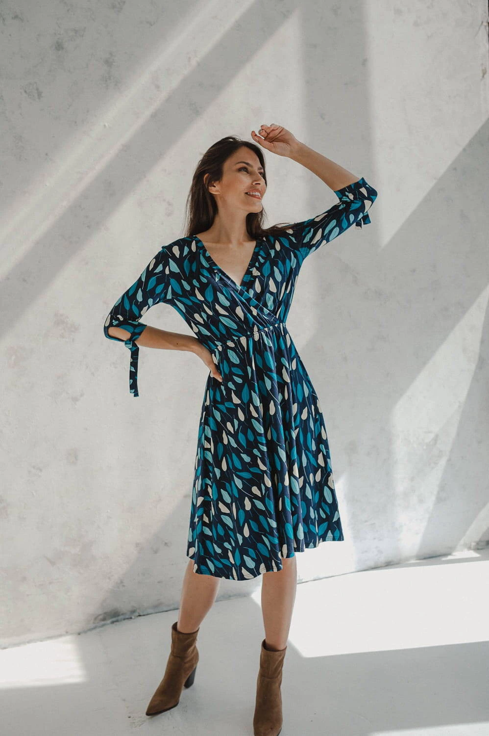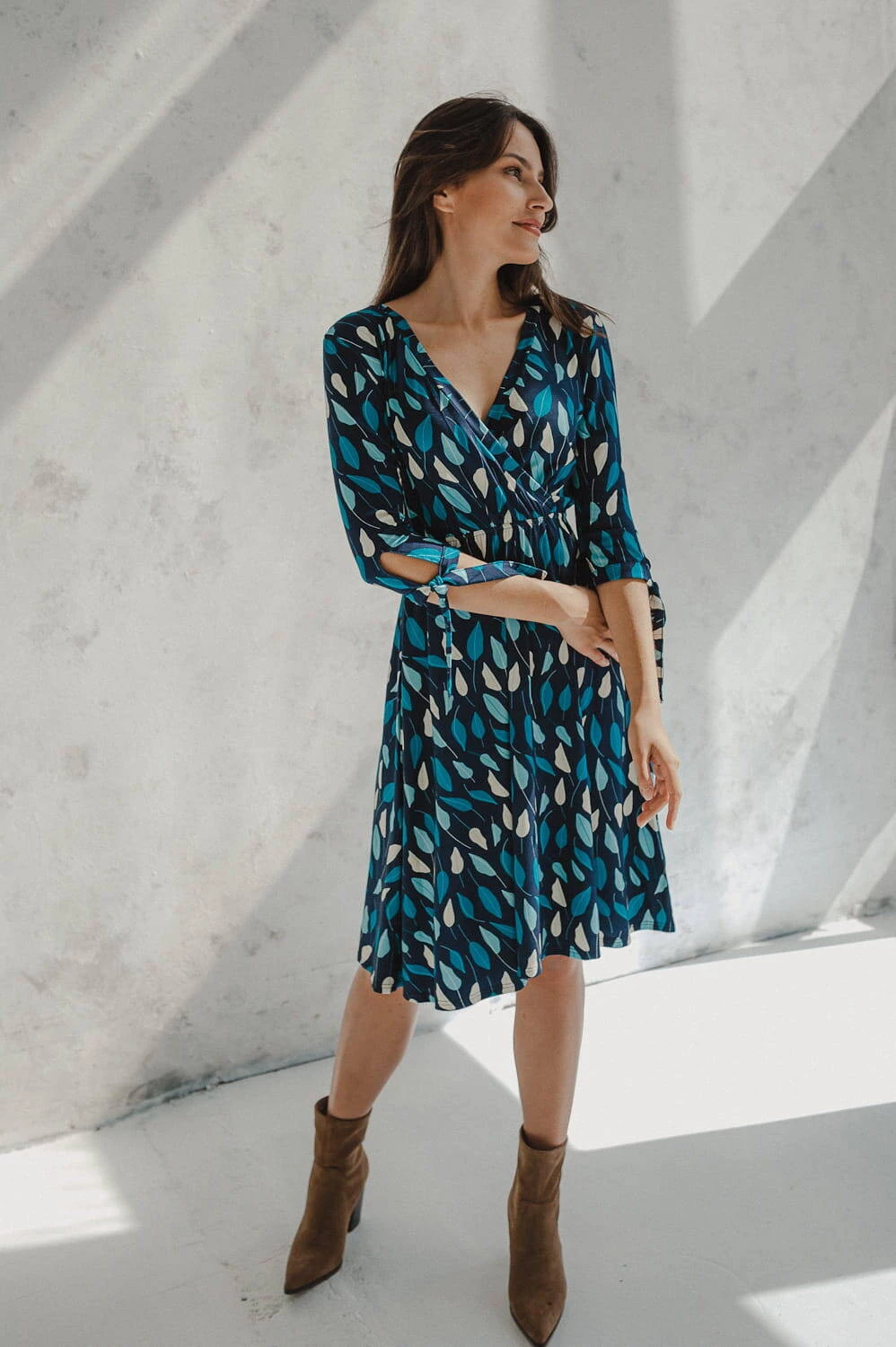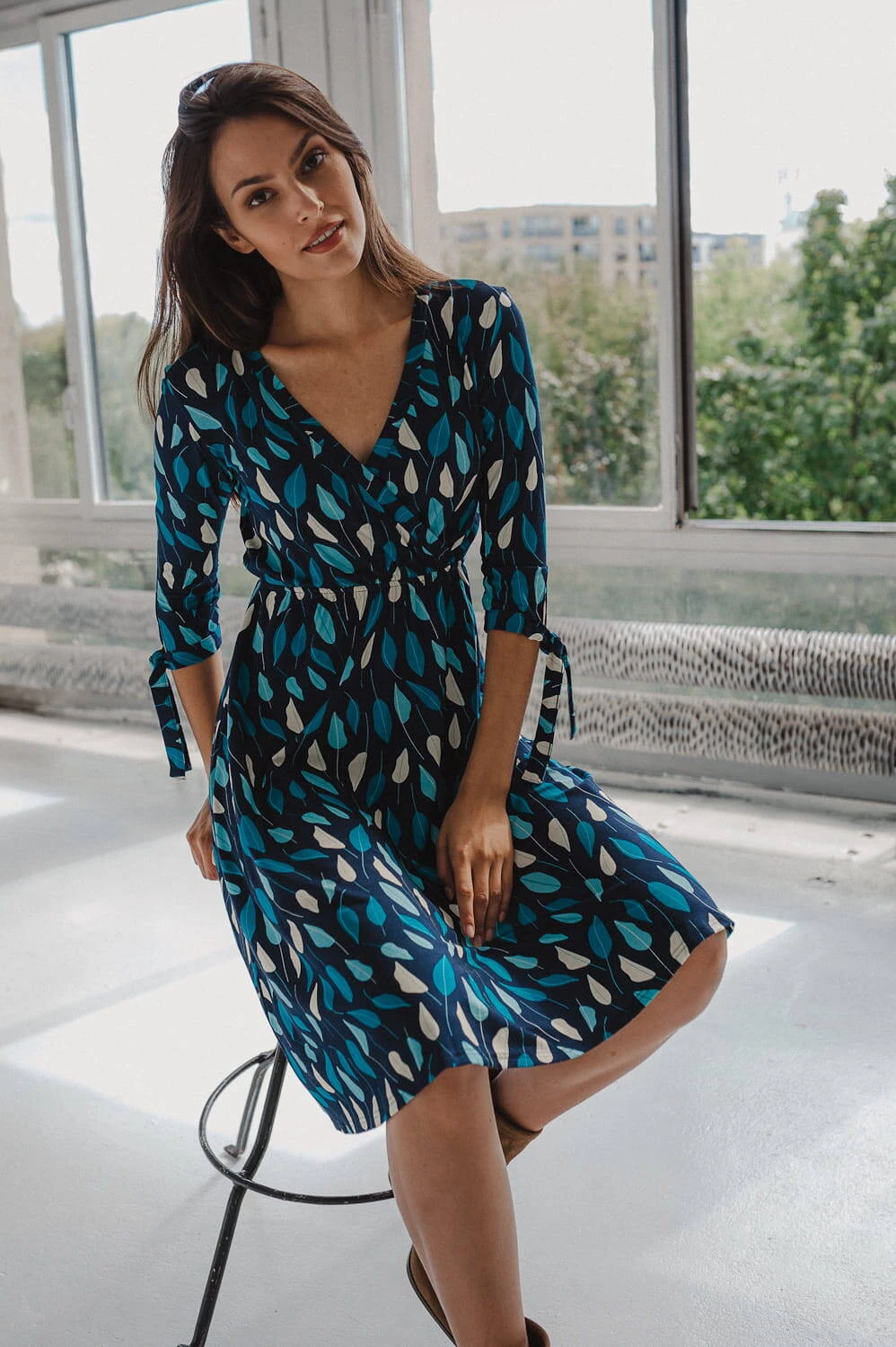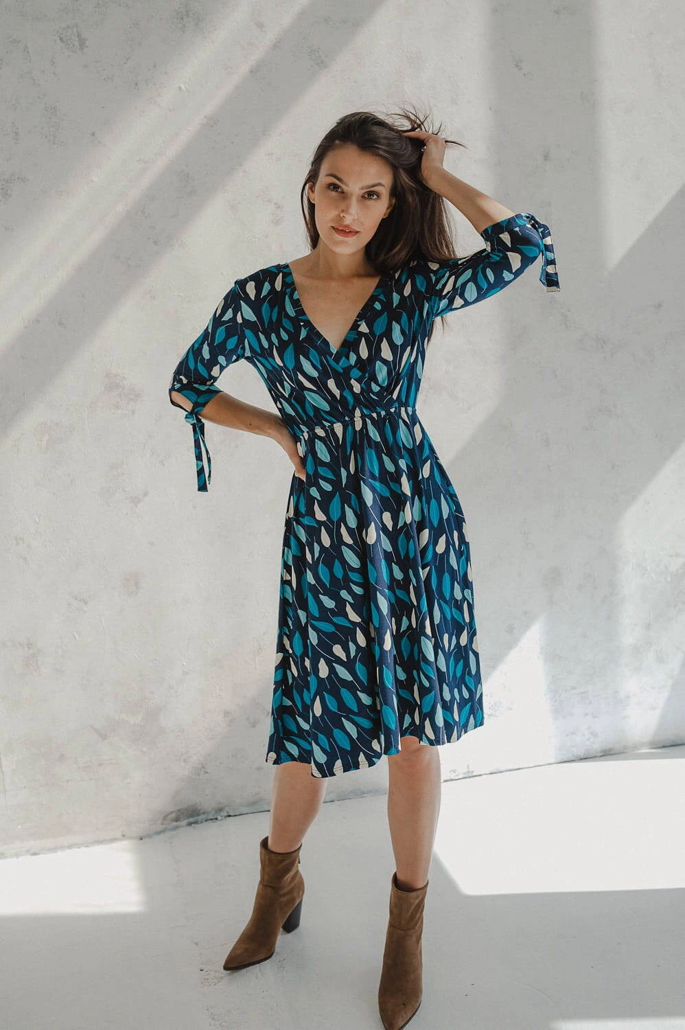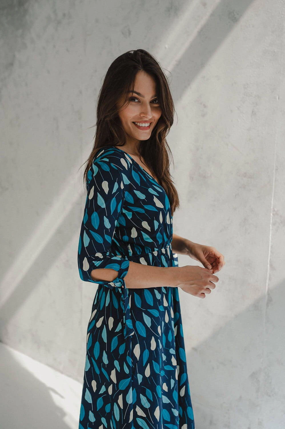 Sukienka ciążowa i do karmienia Two Ways MIDI rękaw 3/4 granatowa w listki