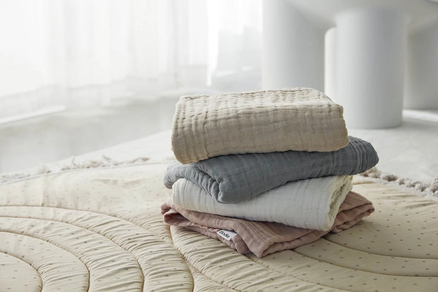 Kocyk uszyty z 6 warstw bawełnianego muślinu, niezwykle przyjemnego materiału.