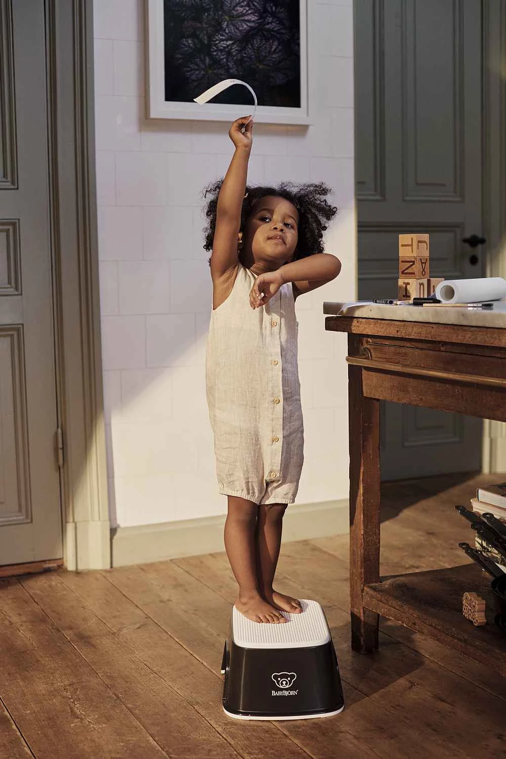 Podest BABYBJÖRN jest na tyle lekki, że dziecko samo z łatwością może je przestawiać. Minimalistyczny design i kompaktowy rozmiar sprawia, że zajmuje bardzo mało miejsca w łazience i czyni go idealnym na wycieczki.