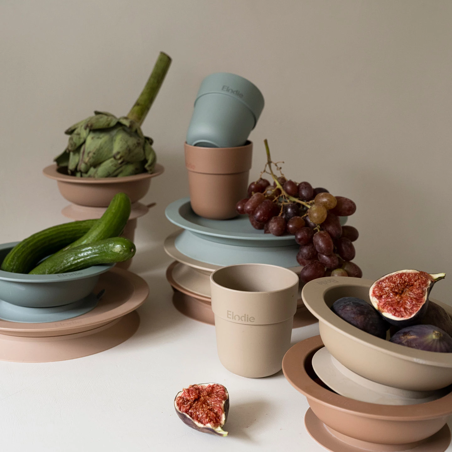 - 3-częściowy zestaw obiadowy dla dzieci Elodie Details składający się z talerza, miski i kubka wykonanych z materiałów przyjaznych dla środowiska.
