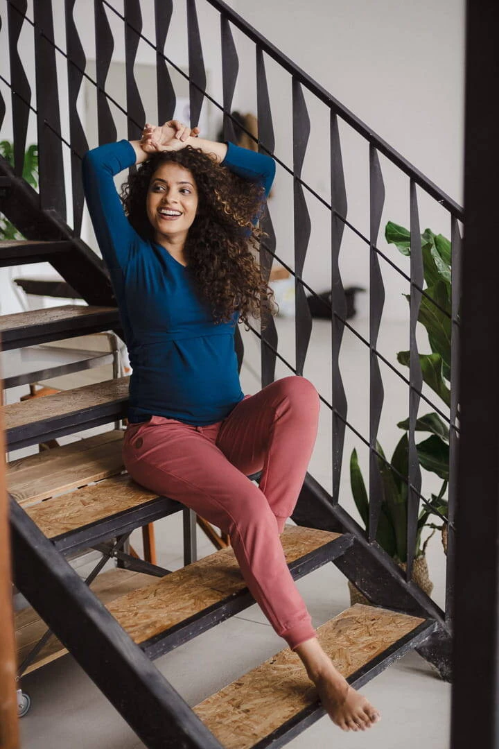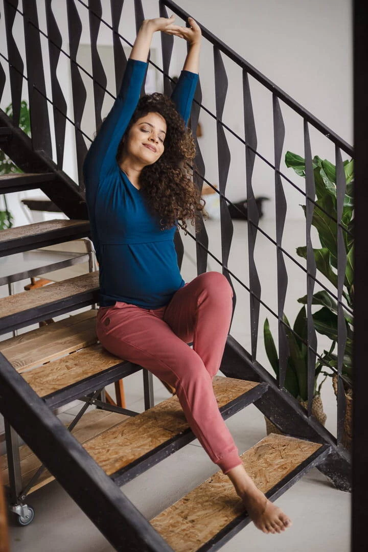Idealna bluzka ciążowa w wyjątkowym niebieskim kolorze którą założysz do wszystkiego i na każdą okazję. Damskie bluzki ciążowe z dekoltem w modny serek i wygodnym rękawkiem to must have Twojej ciążowej garderoby. Brzuszek przyszłej mamy powinien czuć się wygodnie, dlatego wysokiej jakości bluzki ciążowe z kolekcji Milk shirt chronią ciążowy brzuszek otulając go delikatną bawełną, która nie uczula ani nie alergizuje Twojej pociechy i Ciebie również po okresie ciąży kiedy karmisz Swoje maleństwo. Odzież ciążowa dopasowana do Waszych potrzeb i zadań specjalnych, która zadba o komfort przyszłej mamy na każdym etapie, już dziś może być Twoja. Postaw na kolorową kolekcję bluzek dla ciężarnych i na okres karmienia piersią, która dzięki modnemu fasonowi również po ciąży może Ci towarzyszyć kiedy zajdzie taka potrzeba.
