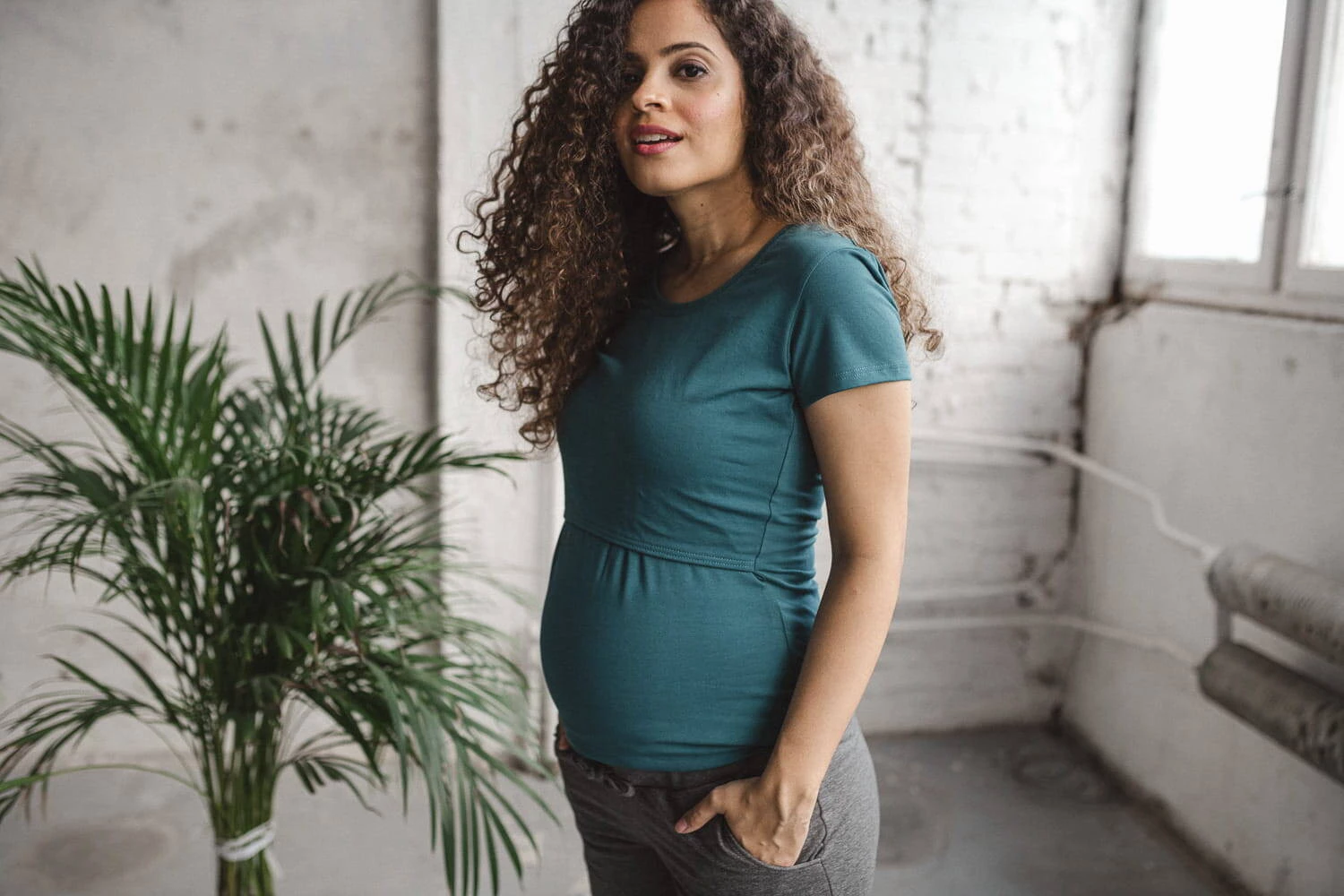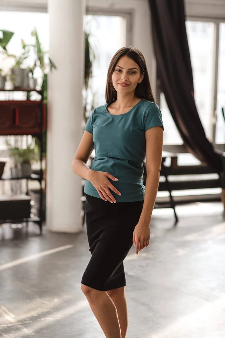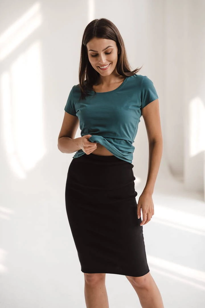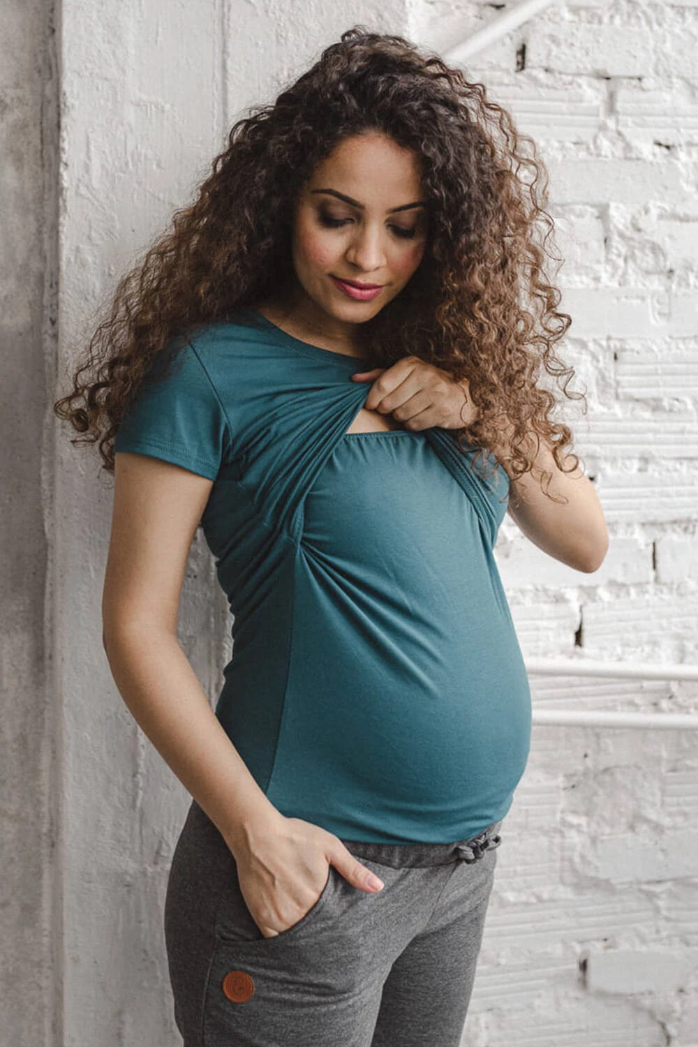 Bluzka ciążowa i do karmienia z krótkim rękawem Milk Shirt - Turkusowa