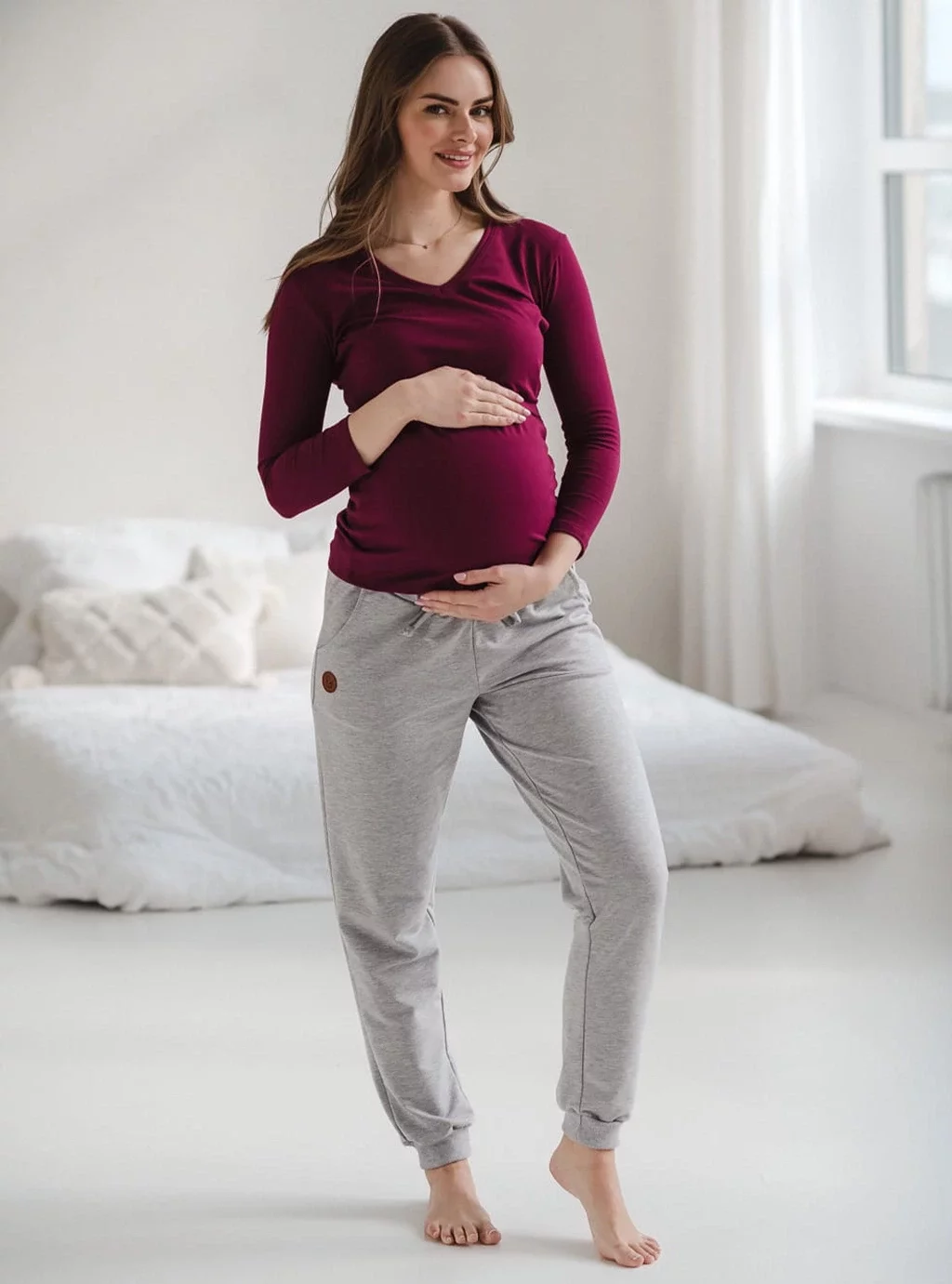 - Elastyczna dzianina – pomieści ciążowy brzuszek bez uczucia ucisku.