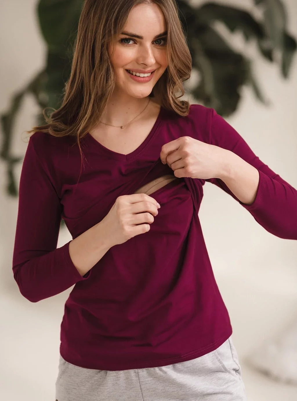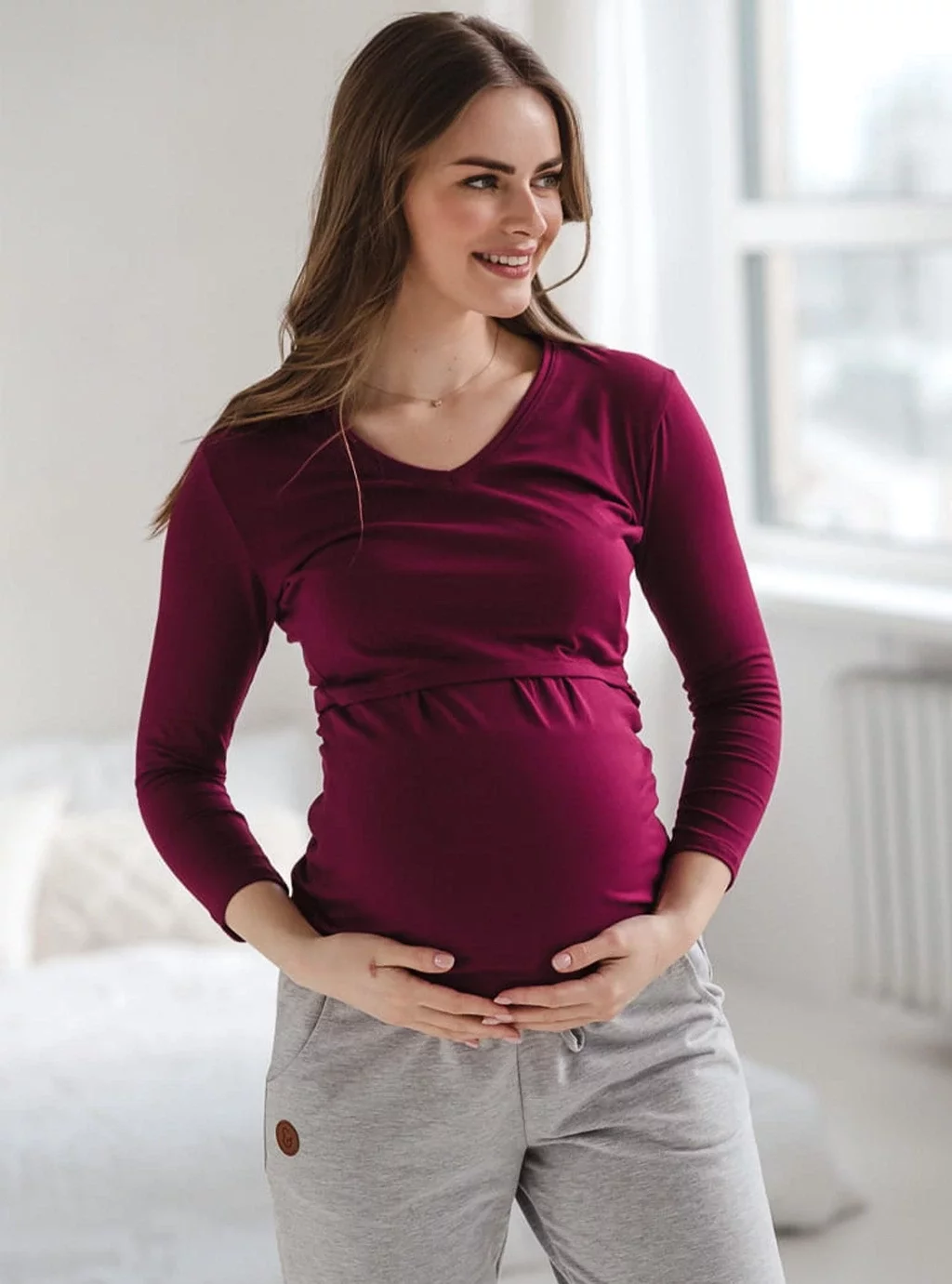 Bluzka ciążowa i do karmienia Milk Shirt jagodowa z dekoltem w serek