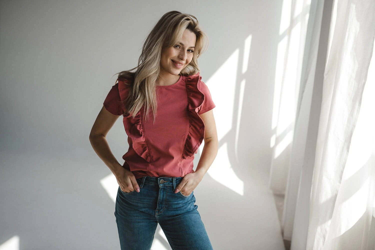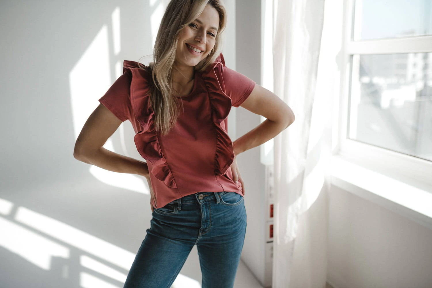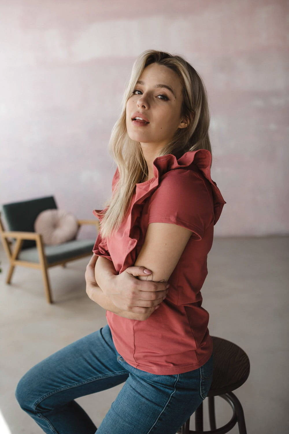 W tej ofercie oferujemy bluzkę w kolorze Dusty cedar z ozdobną falbanką dla świeżo upieczonych mam które została starannie uszyta w Polsce przez renomowaną markę Milk & Love, której fasony ciążowe i do karmienia są cenione od lat przez kobiety w okresie ciąży i po porodzie, gdy karmią swoje maleństwo. Stylowe bluzki dla karmiących kobiet zaprojektowane z ideą slow fashion gwarantują, że nasze topy ciążowe i do karmienia sprawdzą się również na później, ponieważ zamki przez które karmisz po przygodzie ciążowej są bardzo dobrze schowane w tym wypadku za uroczymi falbankami.