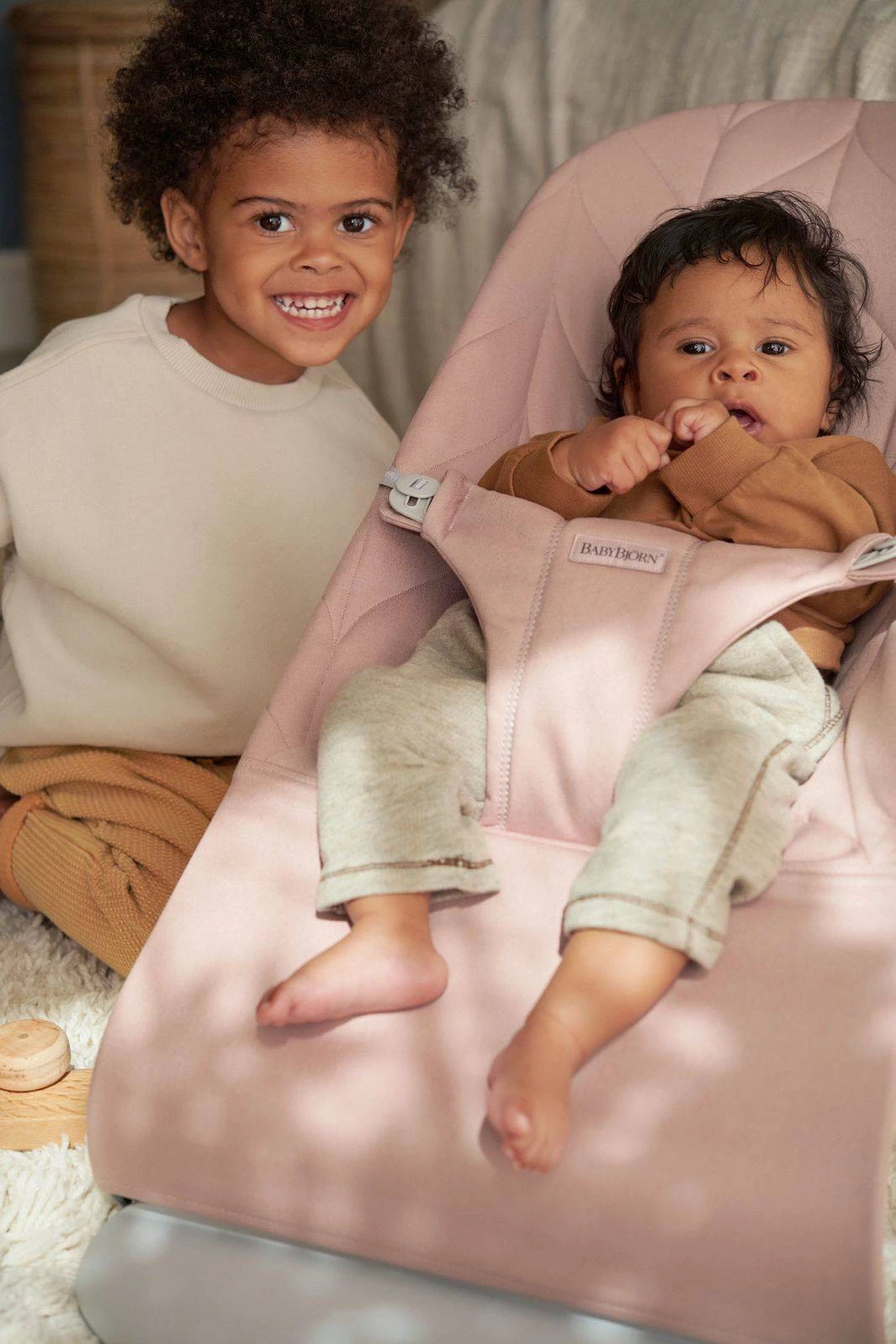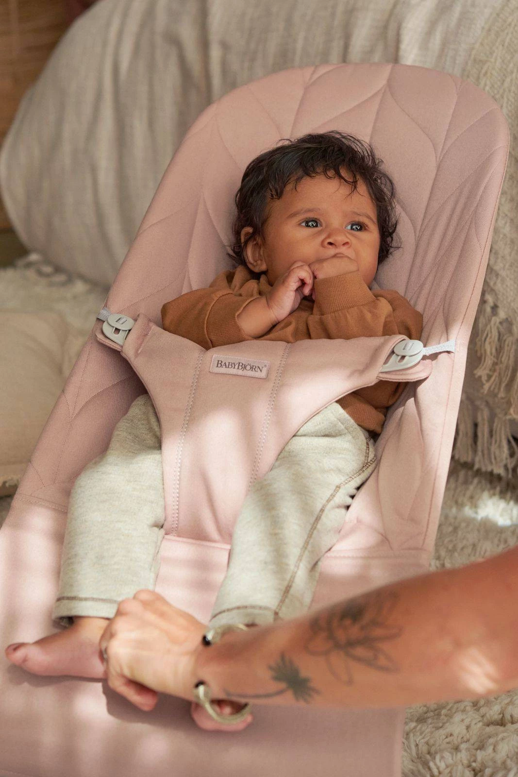 BABYBJORN - leżaczek BLISS WOVEN, Petal Quilt, w kolorze Zgaszony róż z ramą w kolorze jasny szary