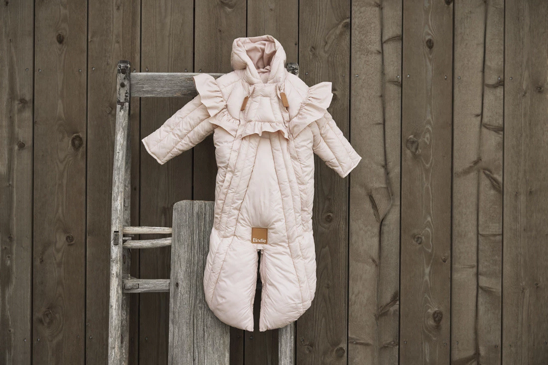 - Elodie Details kombinezon dziecięcy dostępny w dwóch rozmiarach 0-6 oraz 6-12 miesięcy. Dolny zamek błyskawiczny można zapinać na dwa sposoby: jak kombinezon lub jak śpiworek.Można prać w pralce i suszyć w suszarce bębnowej.Pasuje do każdego wózka.