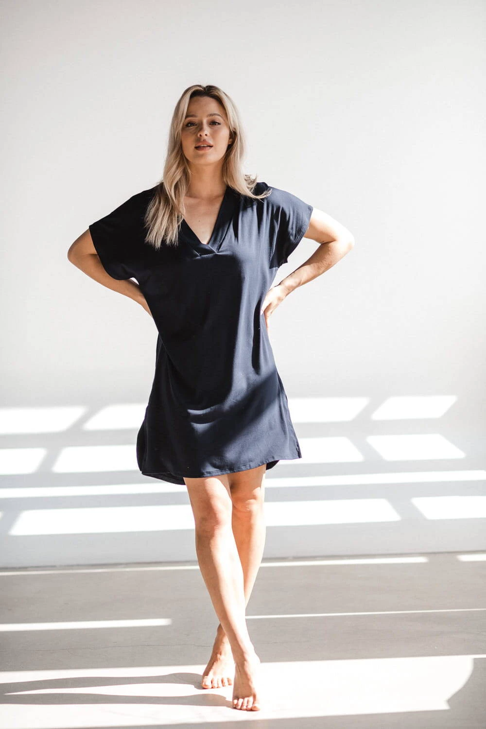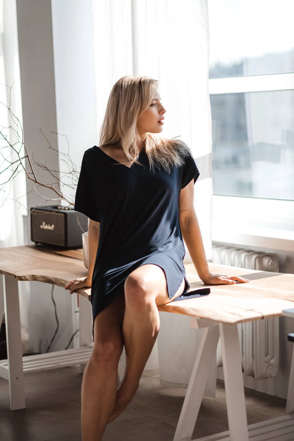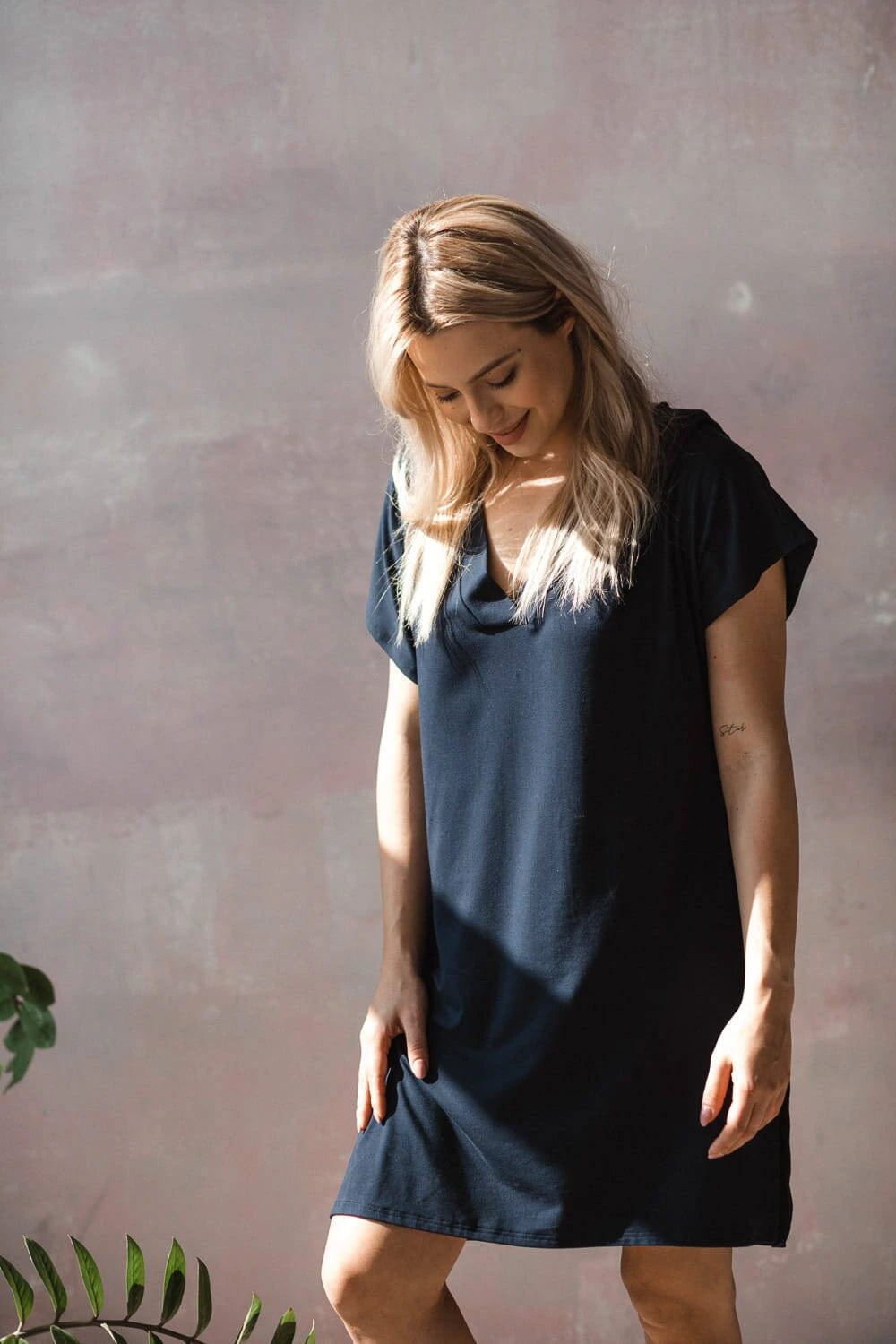 Oversize'owy krój granatowej koszuli zadowoli każdą przyszłą mamę, koszula ciążowa to wygodna bielizna nocna która zapewnia nie tylko miejsce na rosnący brzuszek ciążowy, ale także gwarantuje, że będziesz wyglądać świetnie po porodzie, niezależnie od zmieniającej się sylwetki. Wykonana z najwyższej jakości bambusowej wiskozy, koszula ciążowa Moon przeszła wszystkie testy, aby zapewnić Ci maksymalny komfort i bezpieczeństwo.