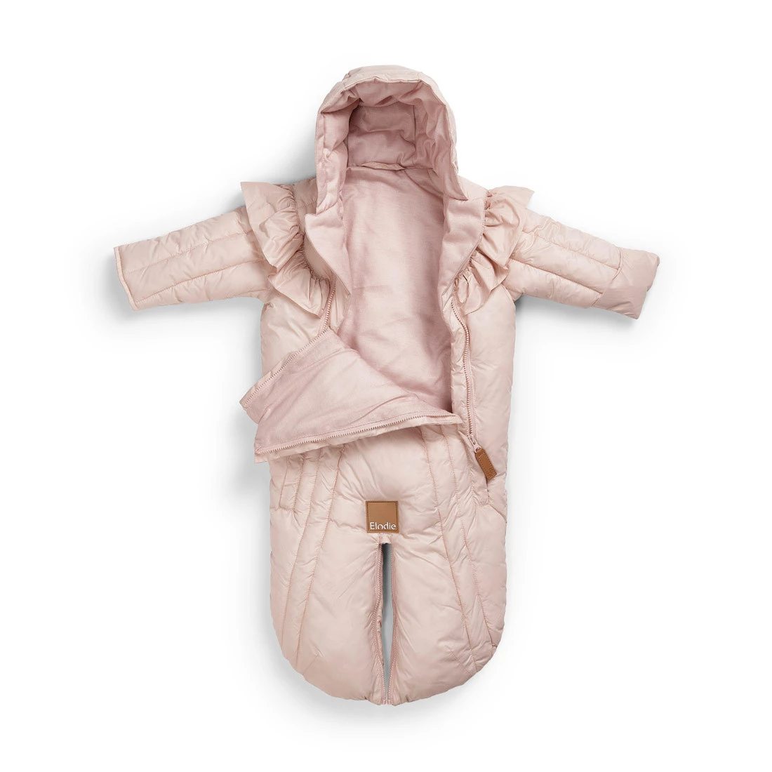- Elodie Details kombinezon dziecięcy dostępny w dwóch rozmiarach 0-6 oraz 6-12 miesięcy. Dolny zamek błyskawiczny można zapinać na dwa sposoby: jak kombinezon lub jak śpiworek.Można prać w pralce i suszyć w suszarce bębnowej.Pasuje do każdego wózka.