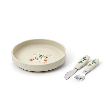 Elodie Details - Zestaw silikonowy - talerzyk i sztućce - Bunny Darling