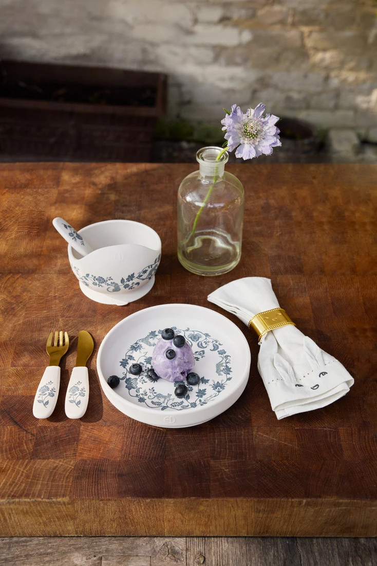 - Elodie Details - zestaw do karmienia silikonowy - miseczka i łyżeczka. Do pierwszych samodzielnie zjedzonych posiłków. Wygodna łyżeczka idealnie leży w dłoni dziecka. Miseczka silikonowa przylega do blatu, nie spada, dziecko jej nie zrzuci.