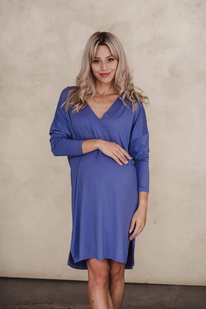 Bambusowa koszula nocna ciążowa i do karmienia z długim rękawem Moon Very Peri