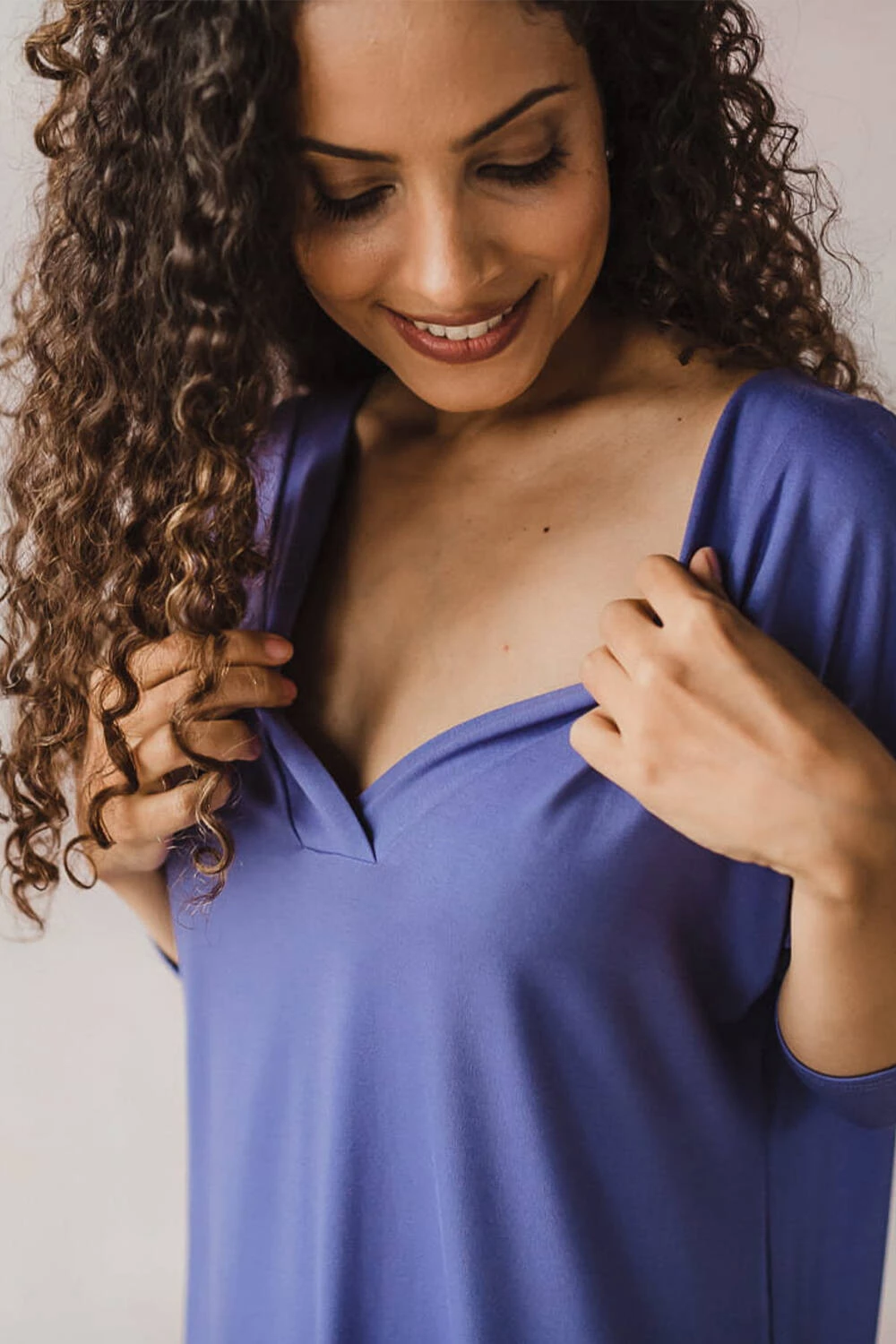 Wprowadź do swojej garderoby nutę świeżości i bliskości z naturą dzięki naszej wyjątkowej koszuli nocnej ciążowej i do karmienia maleństwa w odcieniu fioletu, wykonanej z najwyższej jakości bambusa. To niezwykły element jakim jest ta kobieca koszula nocna, pozwoli Ci cieszyć się chwilami relaksu w harmonii z naturą.