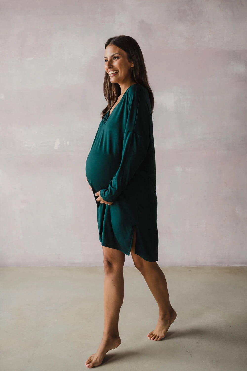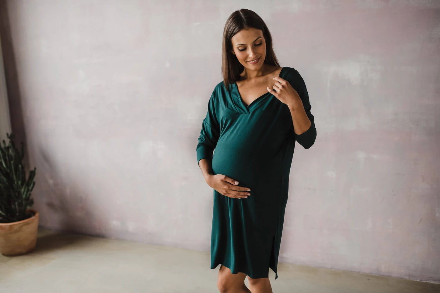 Bambusowa koszula nocna ciążowa i do karmienia Moon - Butelkowa zieleń