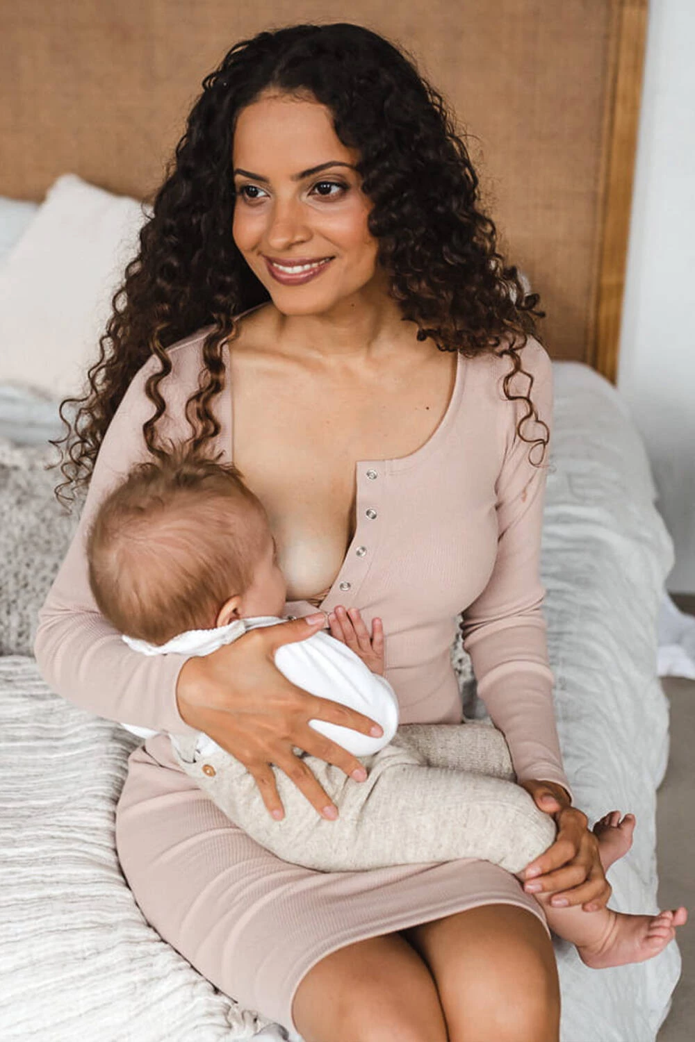 Atrakcyjna sukienka do karmienia piersią i na czas ciąży, wykonana z prążkowanej dzianiny w delikatnym beżowym odcieniu, zapewnia niezrównany komfort i podkreśla kobiecy styl. Dzięki zastosowaniu wysokiej jakości materiałów, które zachowują swoją strukturę i zapewniają wygodę noszenia, nasza sukienka dla karmiących mam i ciężarnych będzie towarzyszyć Ci przez wiele miesięcy. Ta klasyczna sukienka ciążowa ma dopasowany krój i złote napki przy dekolcie, ułatwiając swobodne i dyskretne karmienie piersią. Wygodne sukienki dla ciężarnych, idealne na okres karmienia piersią , można nosić również po porodzie. Nasze Tummy są niezawodne już od pierwszych miesięcy ciąży, a następnie po tym okresie świeżo upieczona mama może je stylizować na różne okazje, jak zwykłe sukienki.