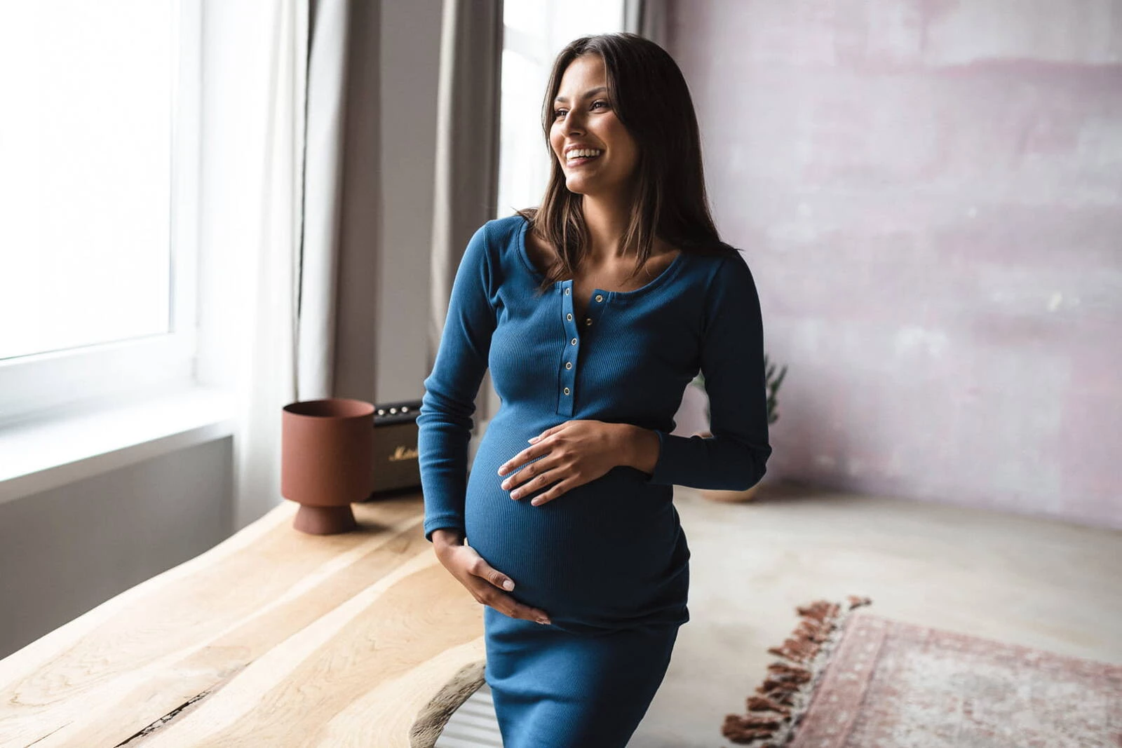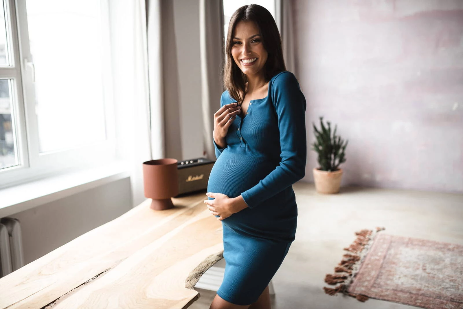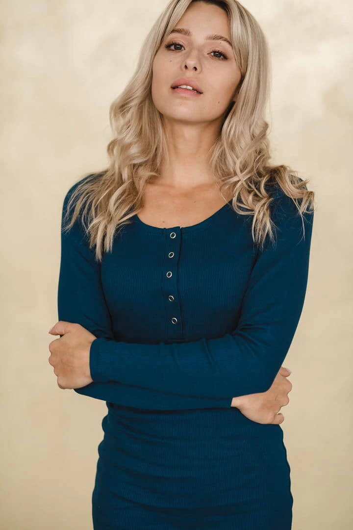 Sukienka ciążowa i do karmienia z kolekcji odzieży ciążowej dostępnej w Formommy zostala wykonana z prążkowanej dzianiny w pięknym odcieniu niebieskiego koloru. To ubranie ciążowe jest niezwykle wygodne i kobiece. Dzięki wysokiej jakości materiałowi, który nie odkształca się i zapewnia komfort noszenia, nasze ubrania ciążowe i sukienka dla karmiących mam zostaną z Tobą na długi czas. Idealna sukienka ciążowa typu basic posiada dopasowany krój, oraz napy przy dekolcie, co ułatwia swobodne i dyskretne karmienie piersią. Wygodne sukienki dla ciężarnych/sukienki do karmienia piersią są doskonałe od I trymestru, możesz również nosić je po ciąży jak tradycyjne proste sukienki.