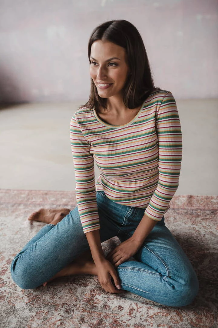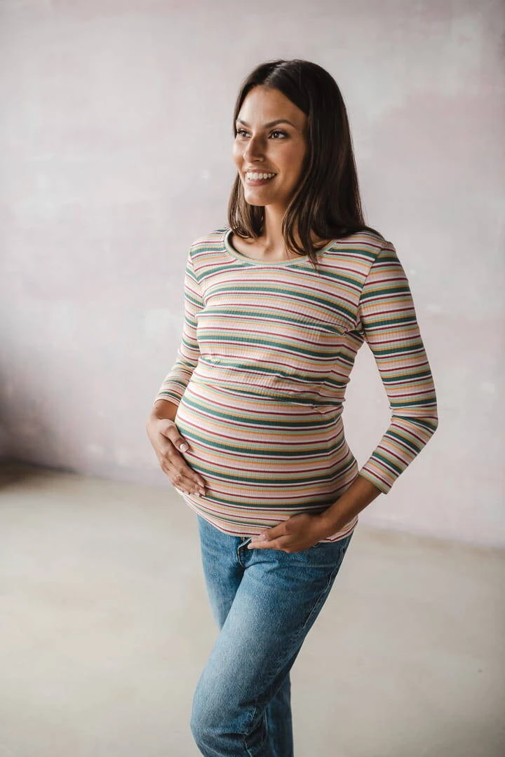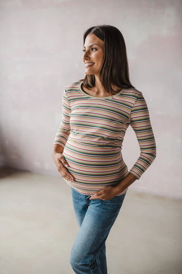 Bluzka ciążowa i do karmienia Milk Shirt rękaw 7/8 w prążek z zielonym