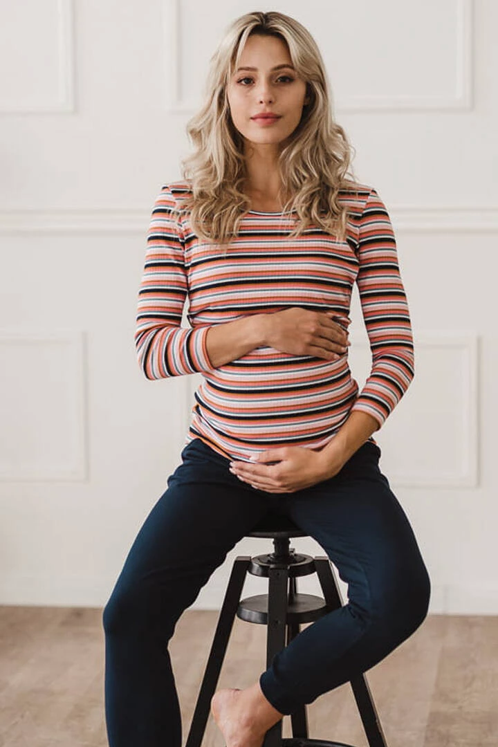 Bluzka ciążowa i do karmienia Milk Shirt - Prążek z granatem
