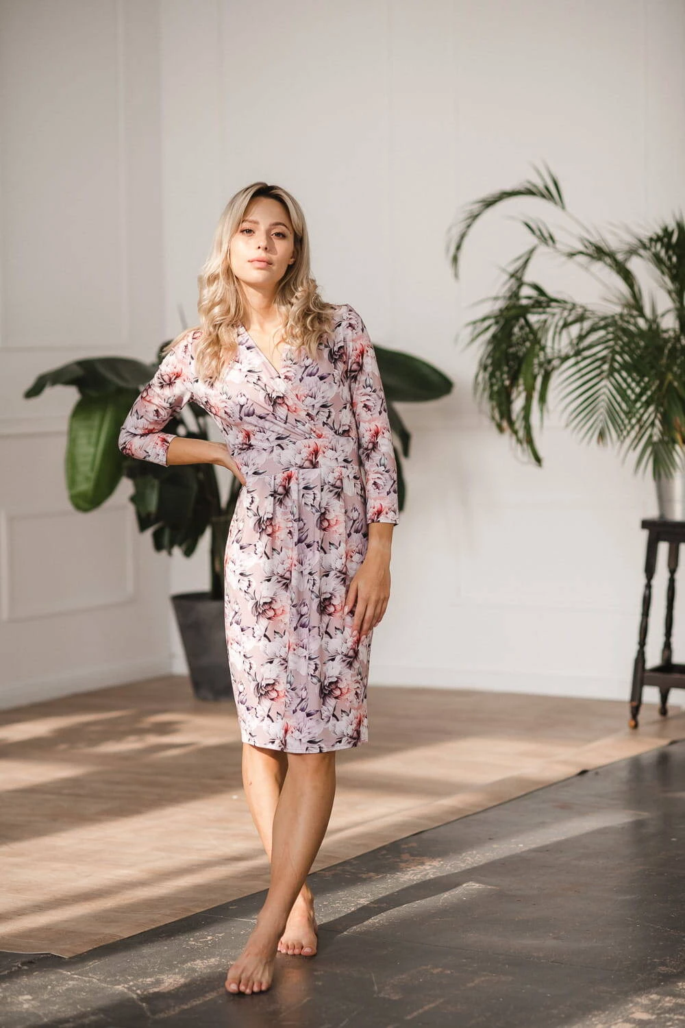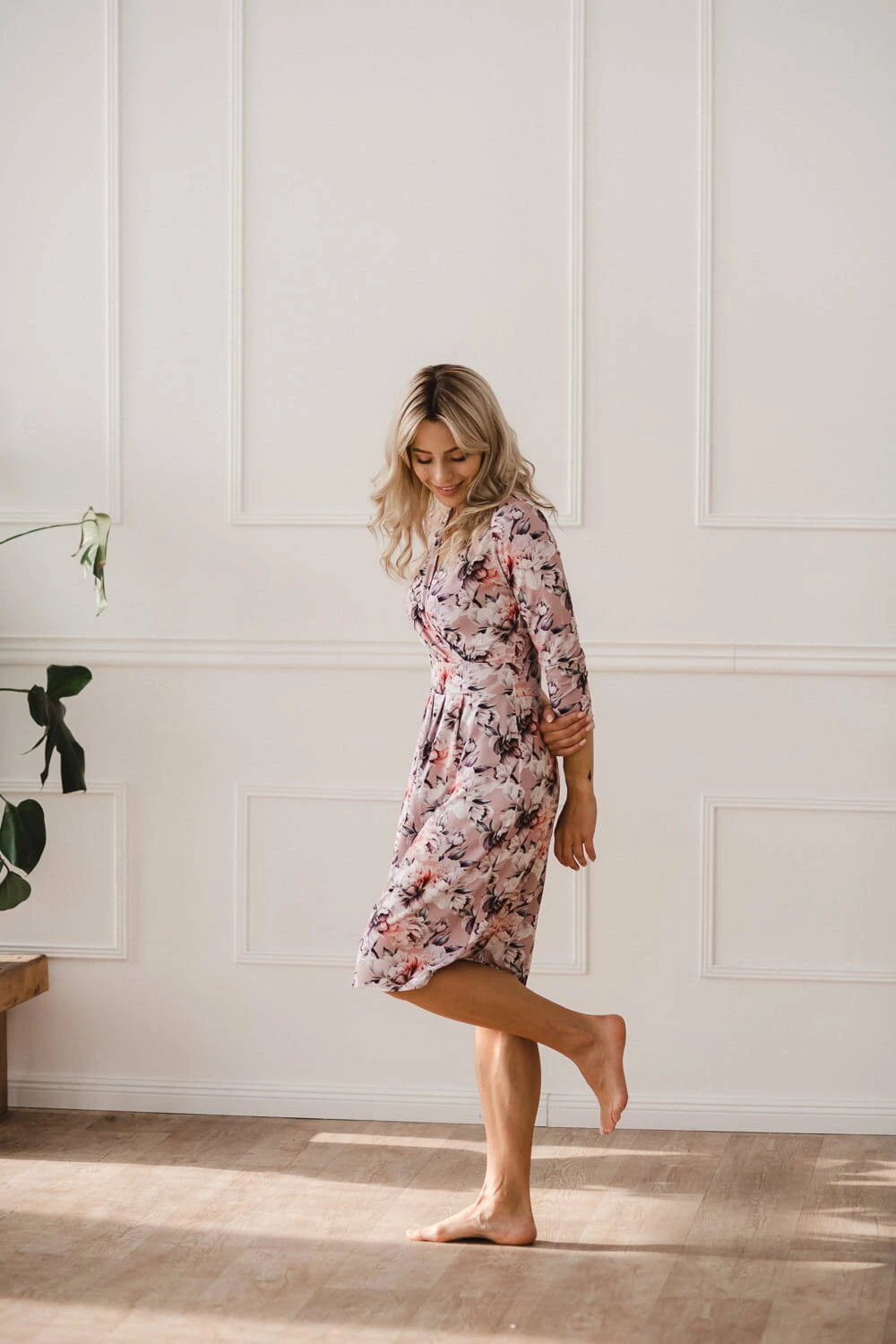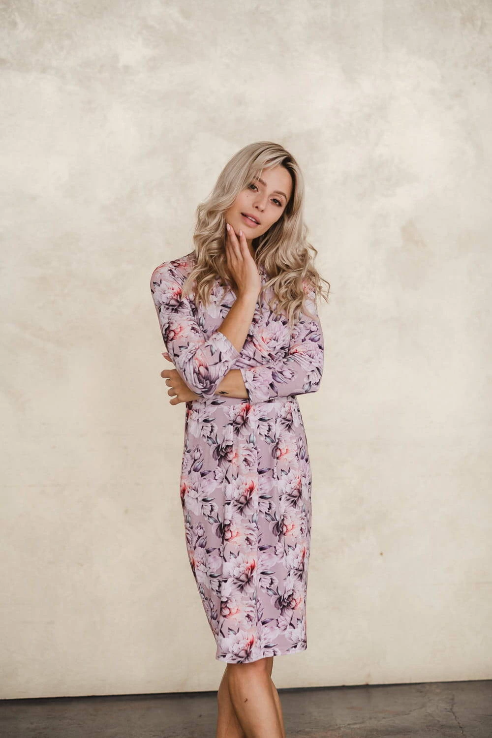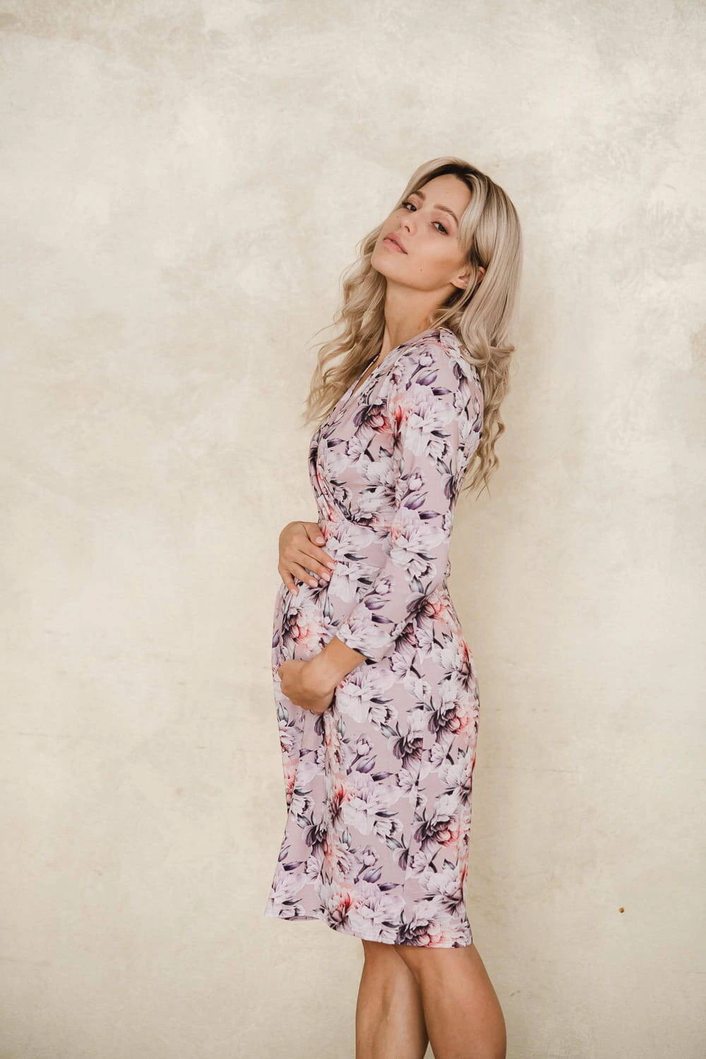Do uszycia tej sukienki dla kobiet w ciąży zostały wykorzystane najwyższej jakości polskie dzianiny, które przeszły rygorystyczne testy Oeko-Tex Standard 100. Dzięki nim sukienka ciążowa na co dzień i na większe wyjście jest nie tylko miękka i przyjemna w dotyku, ale także trwała. Wysokiej jakości materiał zachowuje piękny, kwiatowy wzór nawet po wielu praniach. Idealna sukienka Grow with me to nie tylko elegancja, ale także funkcjonalność. Komfort przyszłej mamy jest bardzo ważny dlatego ta niezwykła sukienka została stworzona tak, aby rosnąć z Twoim brzuszkiem ciążowym, dopasowując się do jego zmieniających kształtów, może zostać z Tobą po okresie ciąży nadal świetnie modelując sylwetkę. Ubrania ciążowe z wygodnym kopertowym dekoltem zapewniają komfortowe karmienie piersią. Odpowiednio długi rękaw 7/8 sprawia, że nasza sukienka na czas ciąży jest idealna na wiosenno-jesiennie dni. Dodatkowo, zgodnie z ideą slow fashion, ten model można nosić przez wiele lat, co czyni go inwestycją w przyszłość.