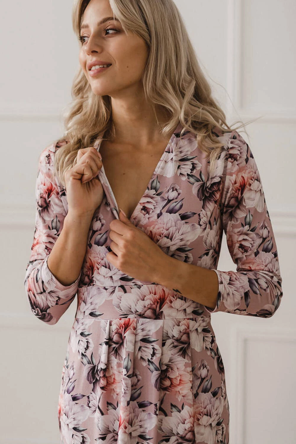 Postaw na wyjątkową sukienkę do karmienia i na okres ciąży, która rośnie wraz z Twoim ciążowym brzuszkiem. Kobiece i modne sukienki ciążowe od marki Milk & Love - mogą Ci towarzyszyć w trakcie całej ciąży od I trymestru. Wykonana z elastycznej, wiskozowej dzianiny w uroczy kwiatowy wzór, nasza sukienka ciążowa podkreśla Twoją elegancję i styl. Teraz nie musisz wybierać między Swoim stylem a wygodą! Kopertowy dekolt to kolejny atut tej niebanalnej sukienki ciążowej. Idealna sukienka dla przyszłej mamy pozwala regulować głębokość dekoltu co ułatwia dyskretne karmienie piersią. Sukienka na czas ciąży i do karmienia w delikatne kwiaty to wyjątkowo praktyczne i stylowe rozwiązanie które masz w zasięgu ręki!