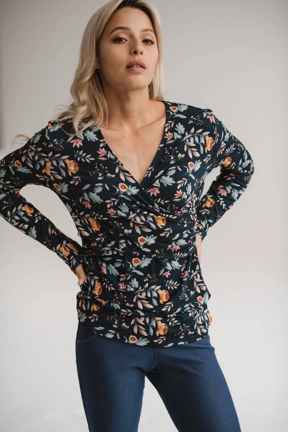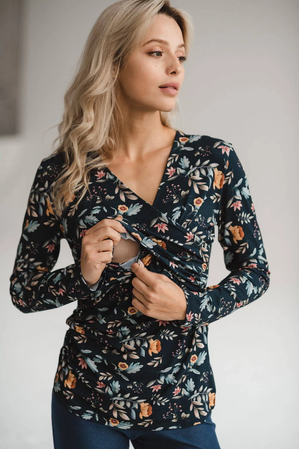 Kopertowa bluzka ciążowa i do karmienia Milk Bar - Granatowa w kwiaty