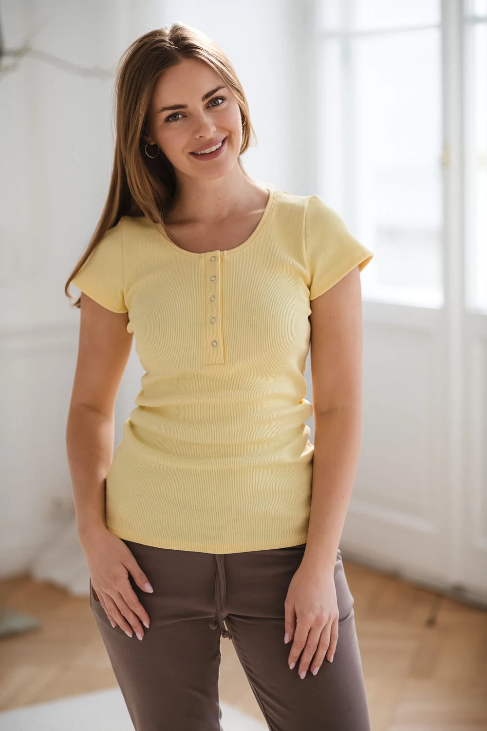 Bluzka ciążowa do karmienia prążkowana krótki rękaw Tummy masełkowa