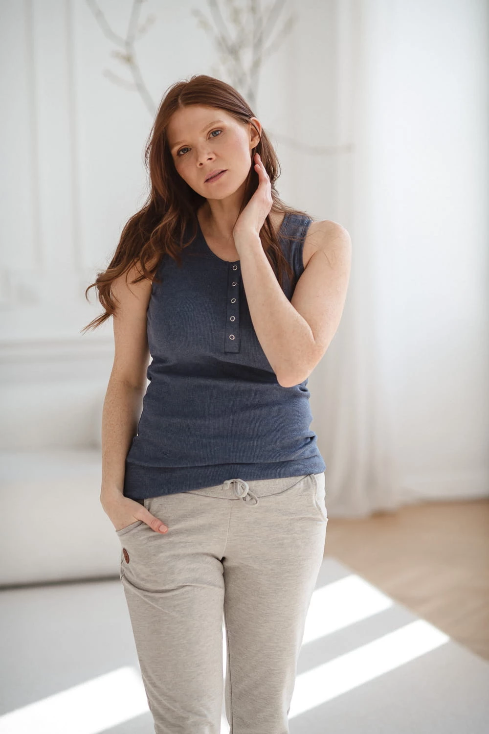 Koszulka ciążowa i do karmienia z elastycznej prążkowanej bawełny – model Tummy