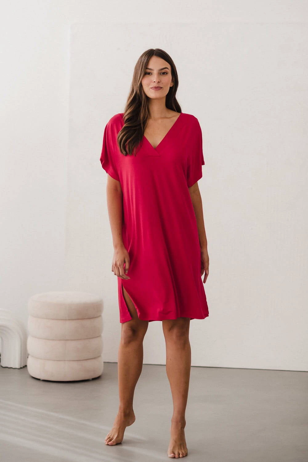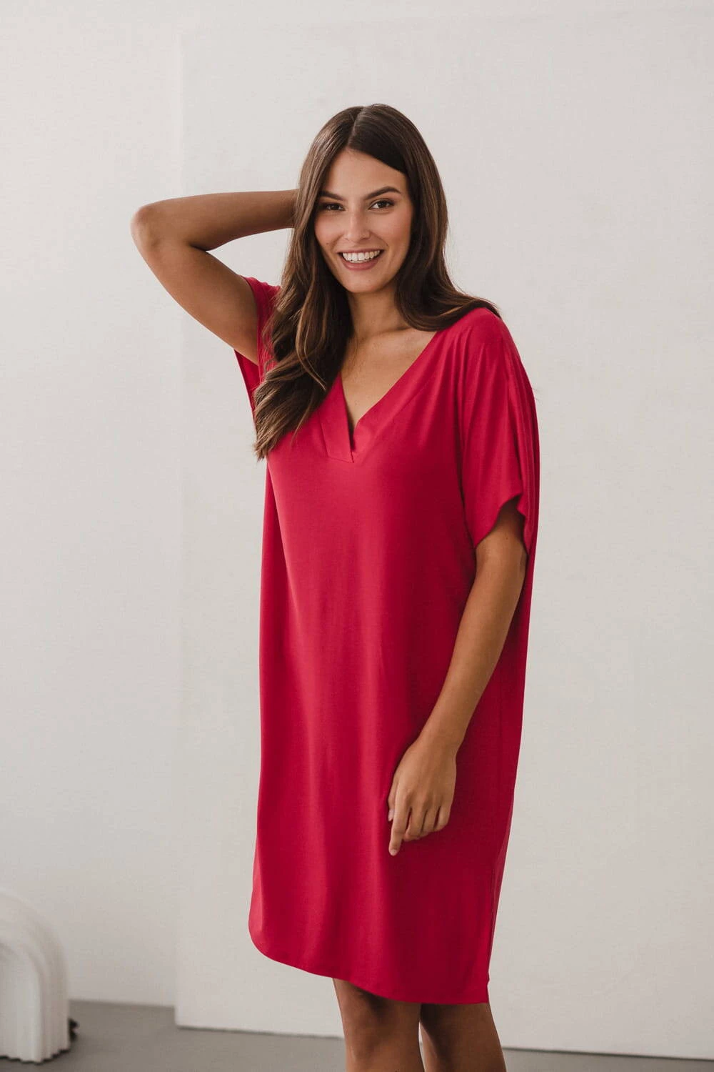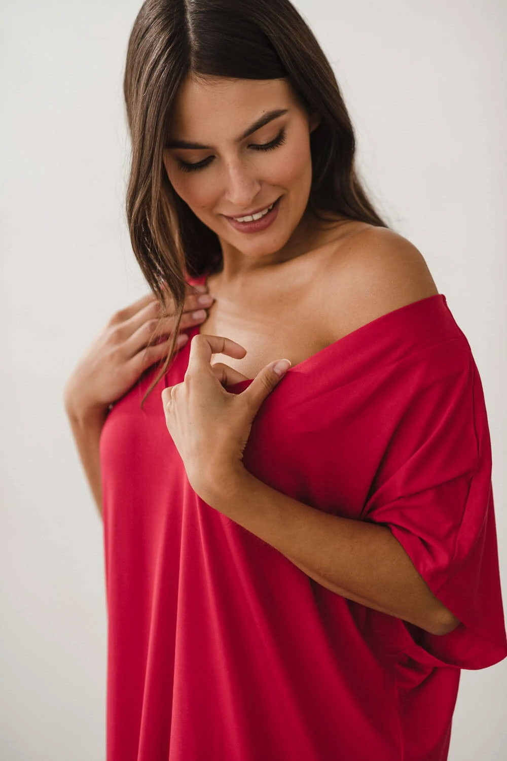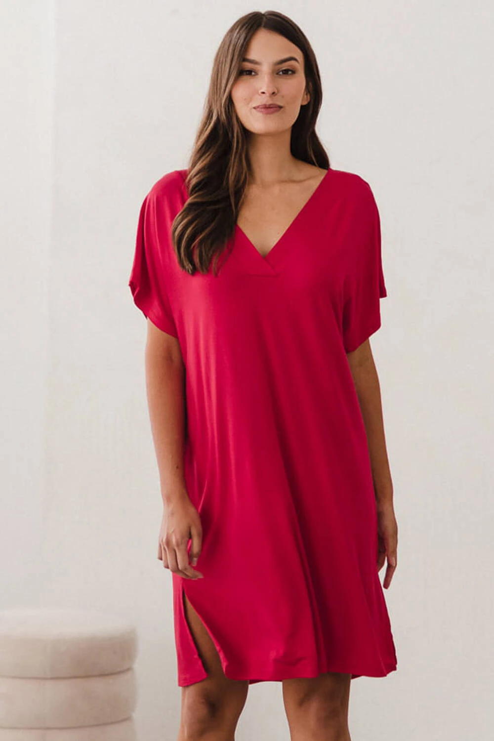 Wybierz komfort i fajny wygląd w czasie ciąży decydując się na naszą wyjątkową koszulę nocną Moon z linii bambusowej, stworzoną z myślą o kobietach w ciąży oraz świeżo upieczonych mamach. Ta doskonała malinowa kobieca koszula nocna wyśmienicie łączy wyrafinowany look z wygodą użytkowania. Delikatność tkaniny bambusowej sprawia, że każdy dotyk dostarcza niezwykłej przyjemności. Koszula nocna z bambusu usprawni nocne karmienie noworodka, co staje się kluczowe szczególnie w pierwszych etapach macierzyństwa. Wybierając tą koszulę z krótkim rękawem, otaczasz się subtelnością od samego początku. Jej klasyczny krój z dekoltem w kształcie litery V emanuje elegancją i podkreśla Twoją kobiecość, dając Ci pewność siebie i piękno nawet podczas karmienia dziecka.