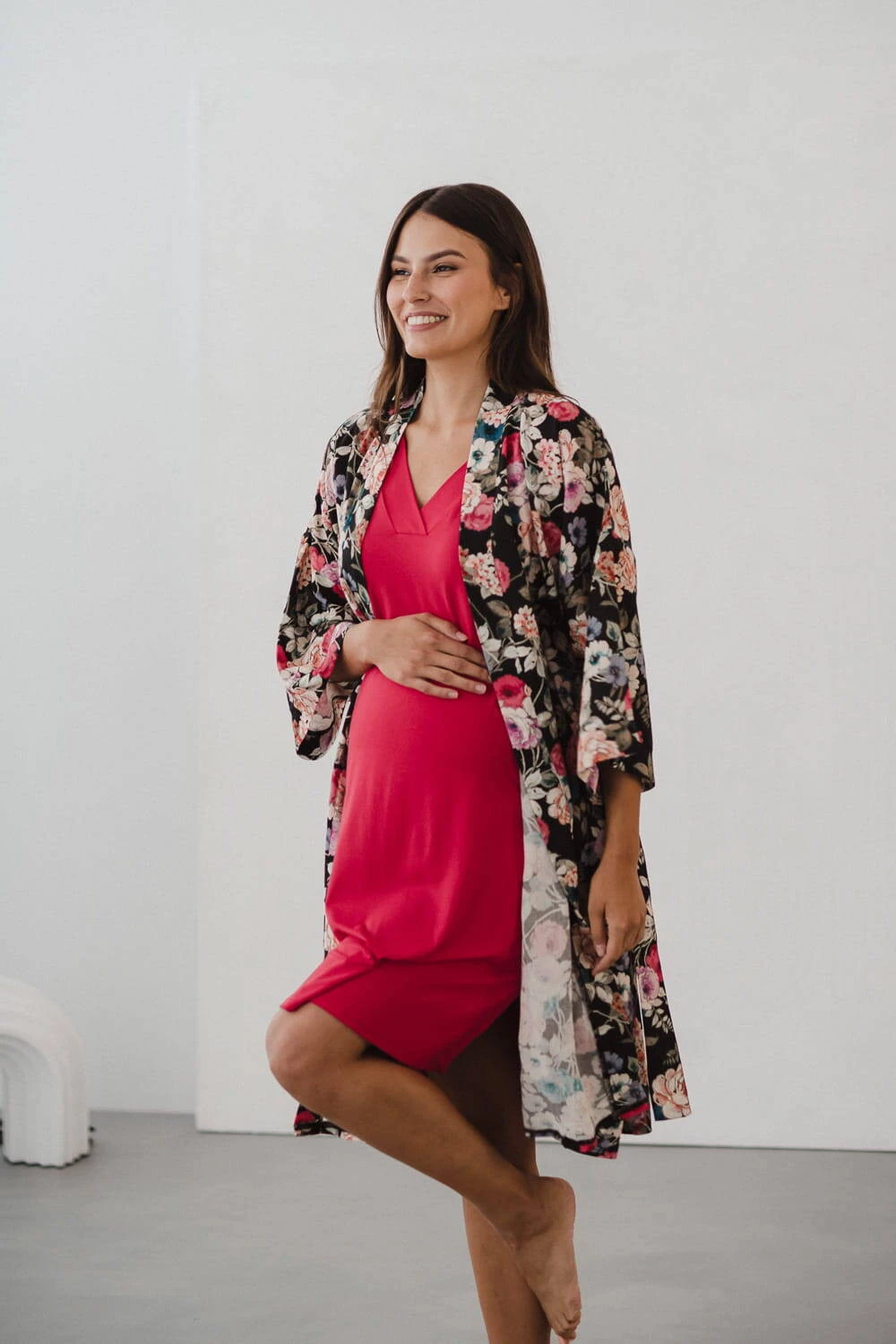 Długość koszuli nocnej jest starannie dostosowana, zapewniając komfort i swobodę ruchu zarówno podczas nocnych spacerów po szpitalnych korytarzach, jak i podczas karmienia noworodka. Wzmocniony dekolt V to praktyczne rozwiązanie, ułatwiające karmienie maluszka – szybko i dyskretnie nakarmisz dziecko zachowując pełną prywatność. Oversize'owy krój czarnej koszuli spełni oczekiwania każdej przyszłej mamy. Kobieca koszula ciążowa to nie tylko wygodna bielizna nocna, zapewniająca miejsce na rosnący brzuszek, ale również świetne rozwiązanie gwarantujące ładny wygląd po porodzie, niezależnie od zmian sylwetki. Idealna koszula nocna Moon została wykonana z najwyższej jakości bambusowej wiskozy, przeszła rygorystyczne testy, by zapewnić maksymalny komfort i bezpieczeństwo Tobie i Twojej pociesze.