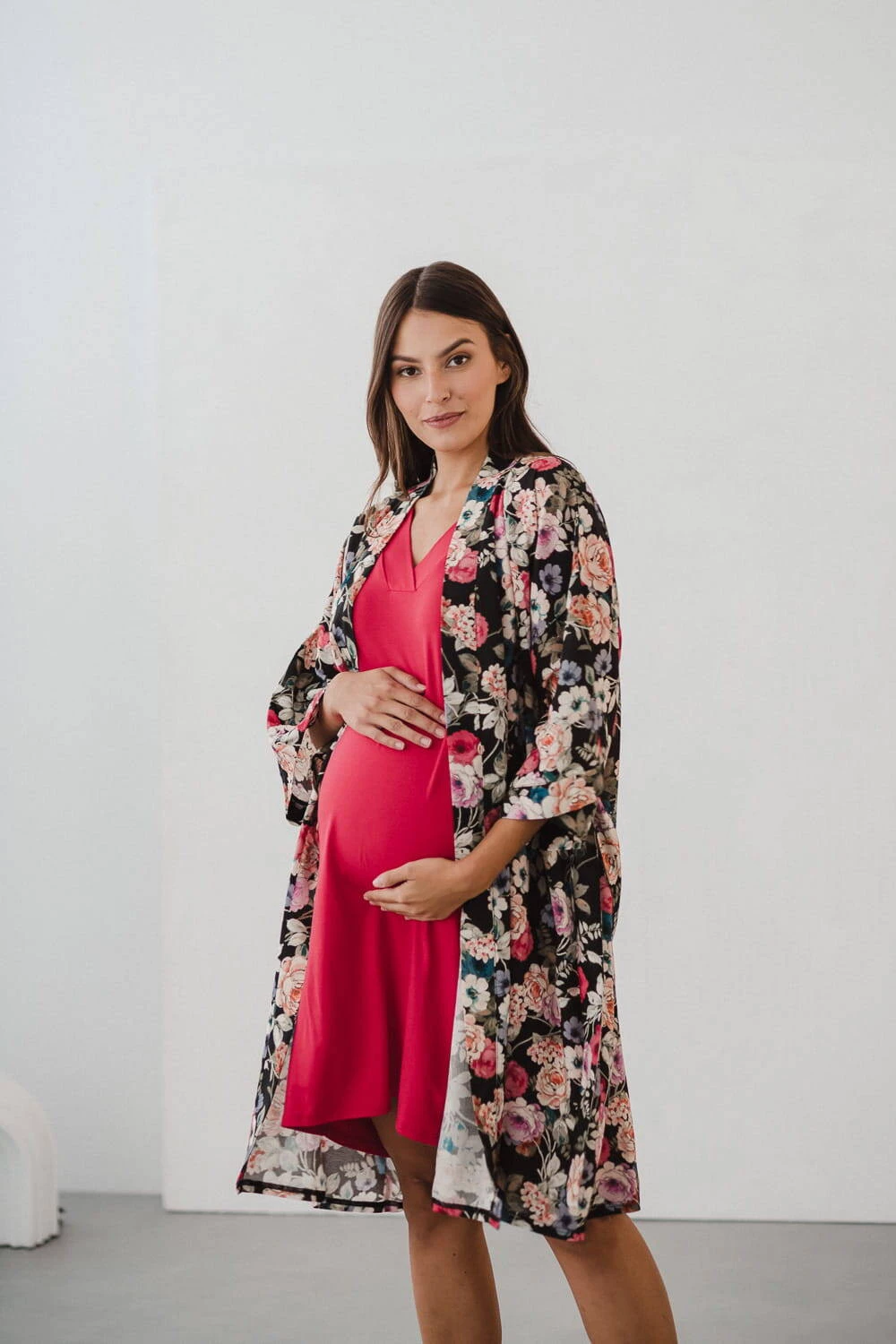 Bambusowa koszula nocna ciążowa i do karmienia Moon - Malinowa