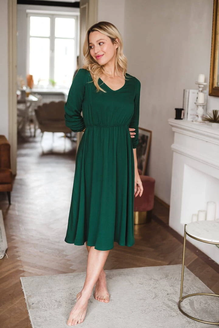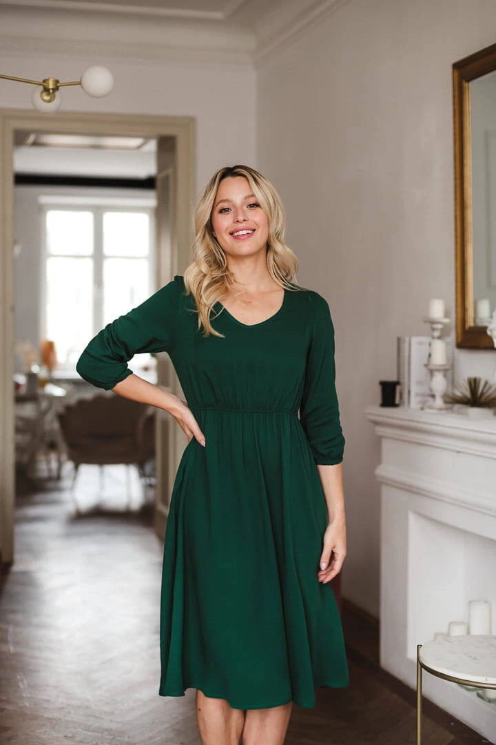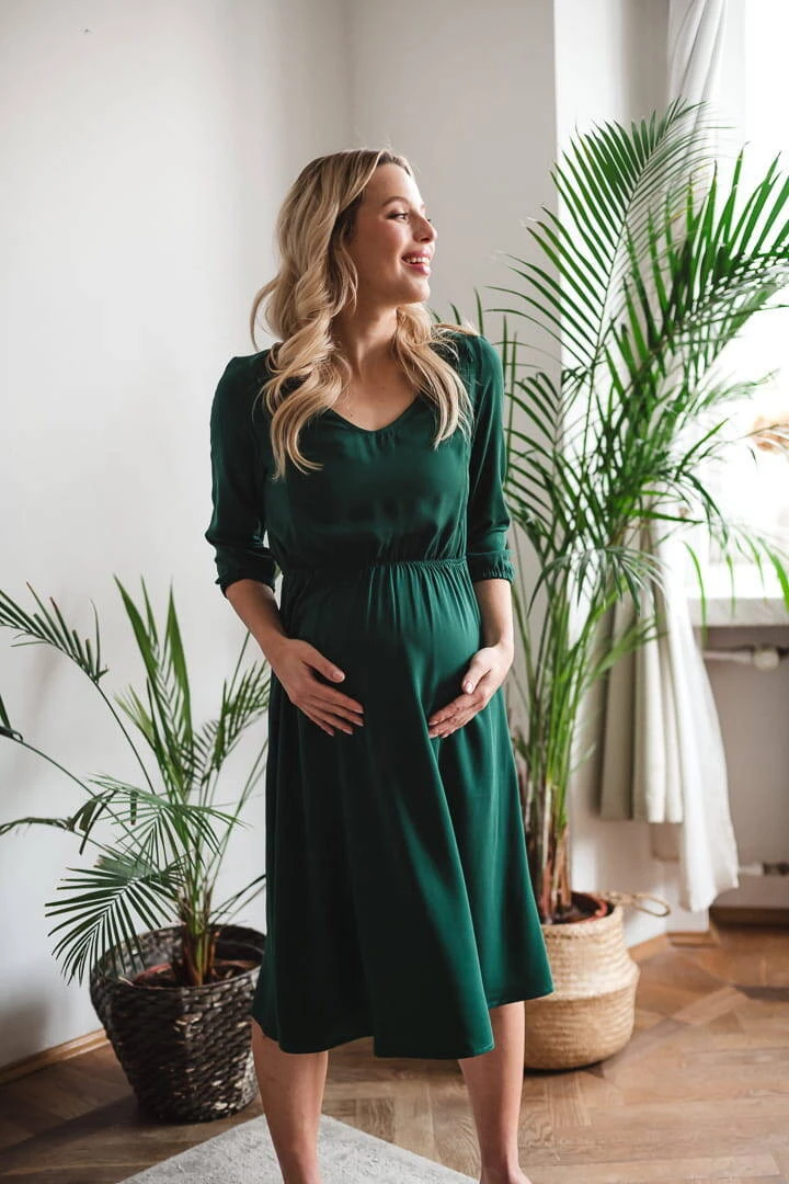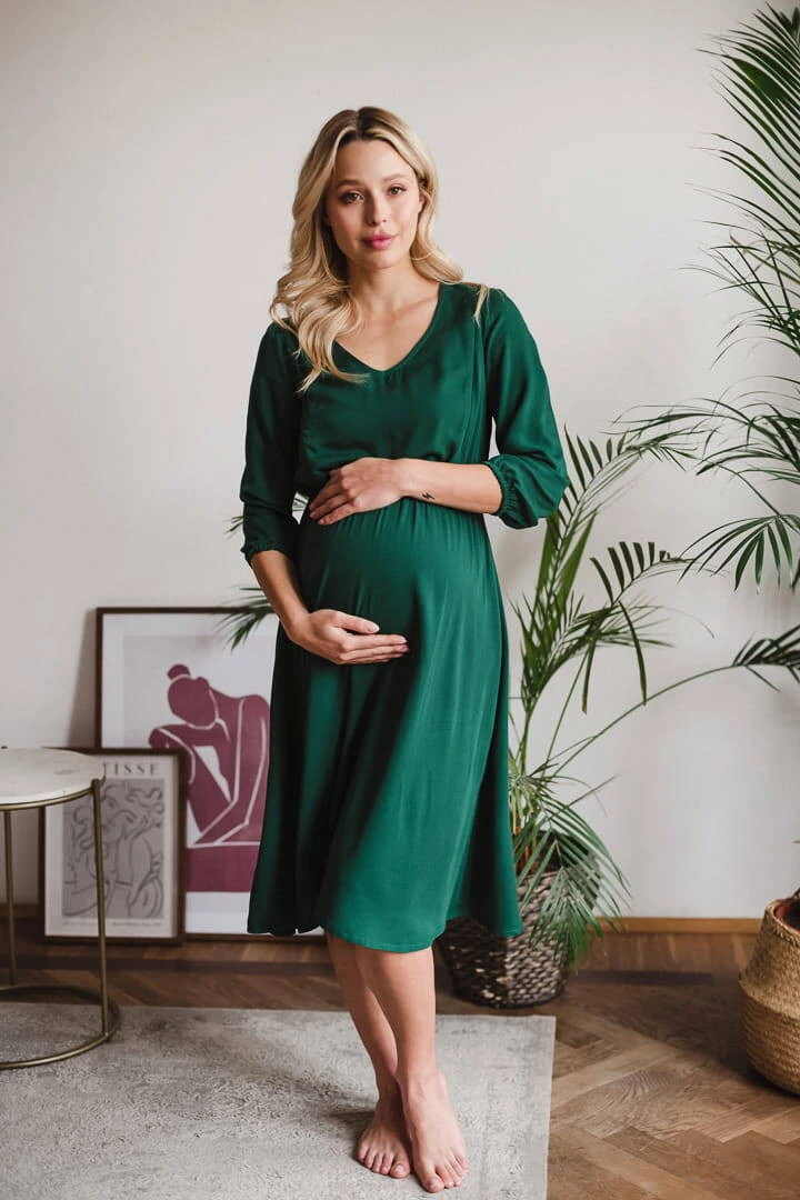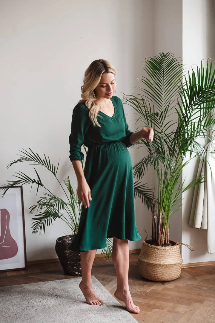 Sukienka ciążowa i do karmienia Lovely Dress Midi rękaw 3/4 butelkowa zieleń