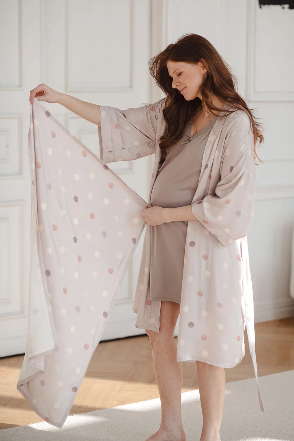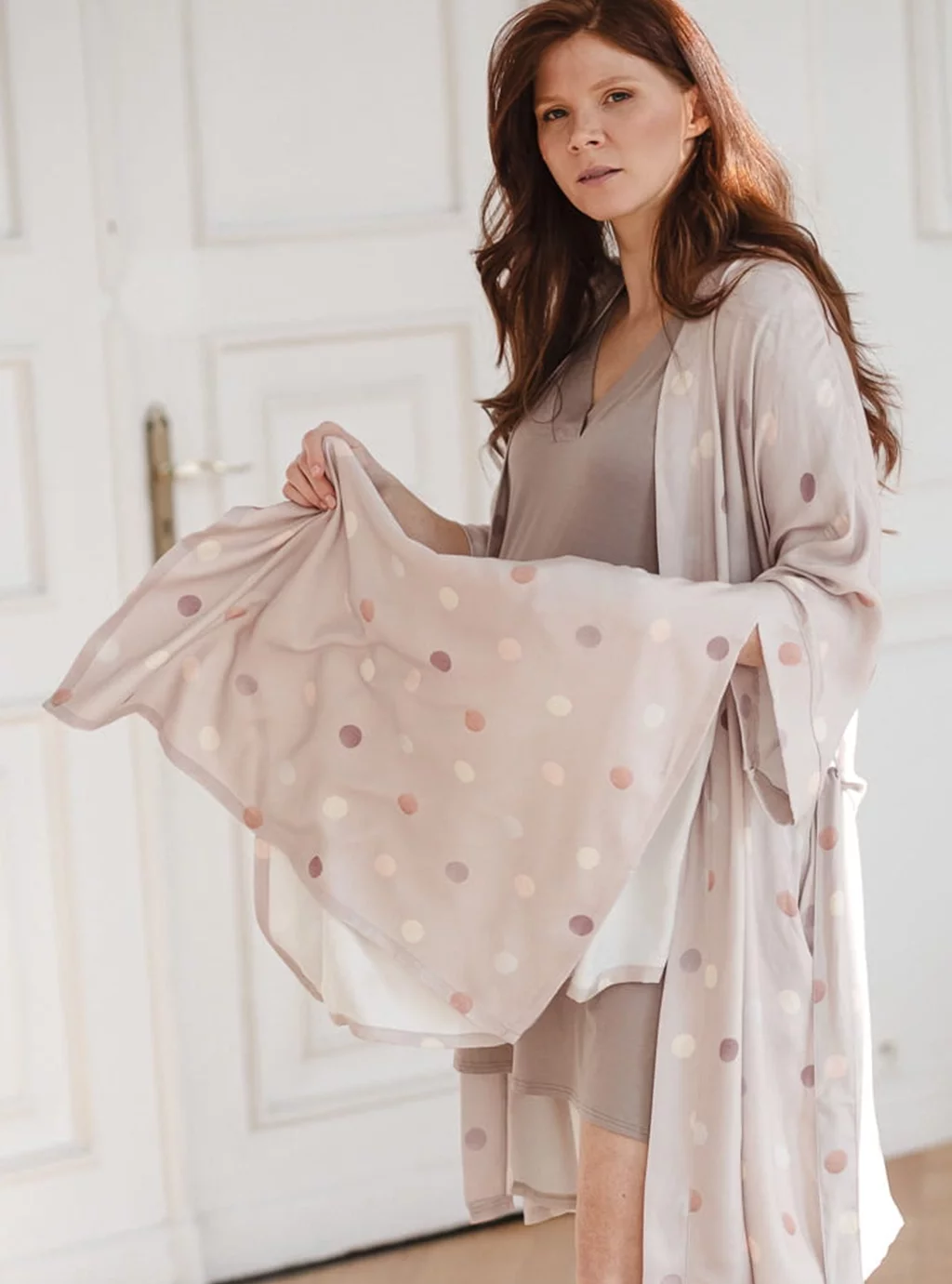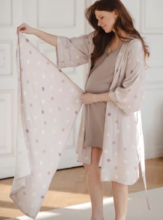 Dobierz do otulacza szlafrok dla mamy w tym samym wzorze Polka Dots – piękny komplet, który łączy wygodę z subtelną elegancją.