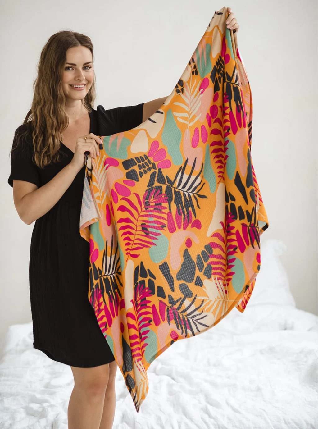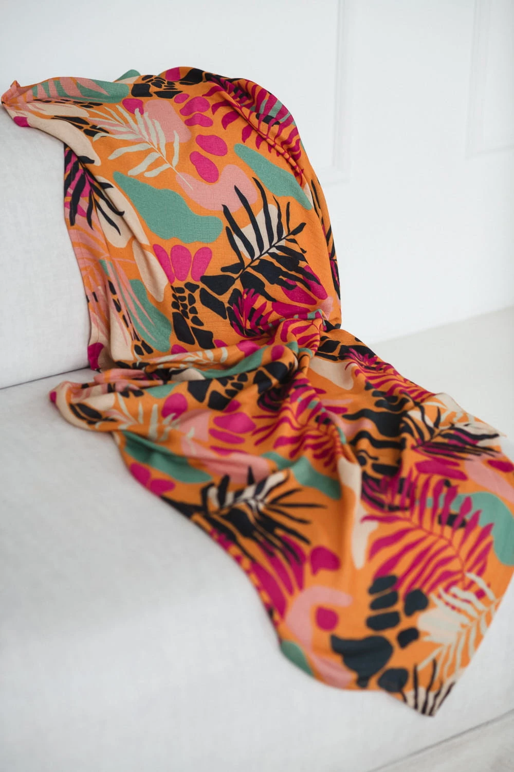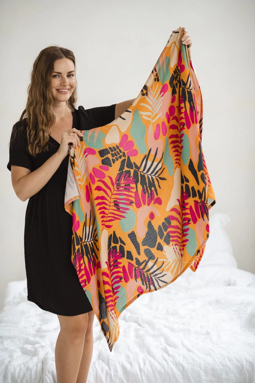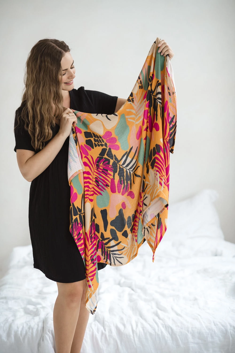 Bambusowy kocyk/otulacz z muślinu XXL Tropical Orange 140x100 cm