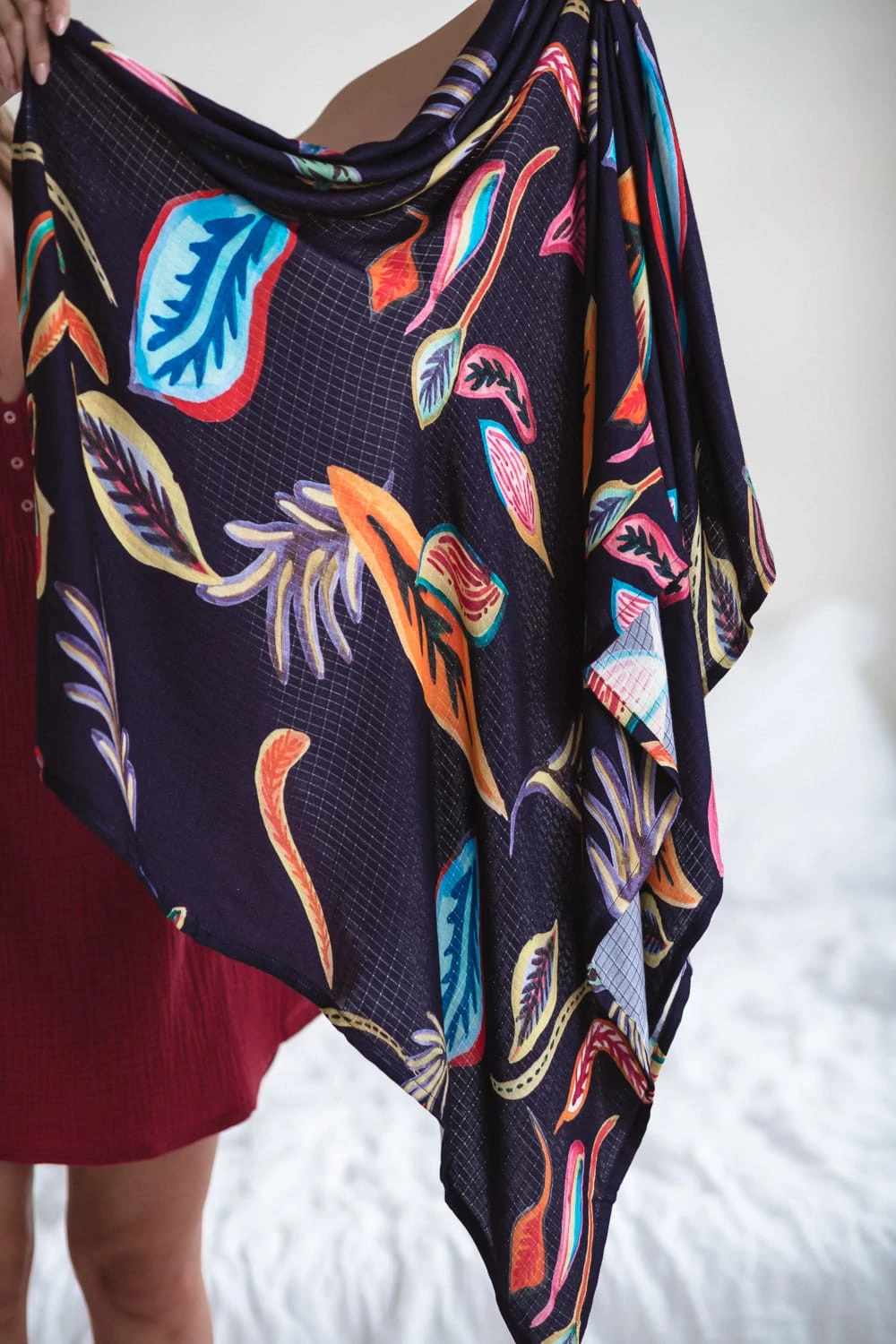 Stwórz zgrany duet z maluchem – dobierz do otulacza szlafrok dla mamy w tym samym wzorze, by zachować spójność stylu na pierwszych wspólnych zdjęciach.