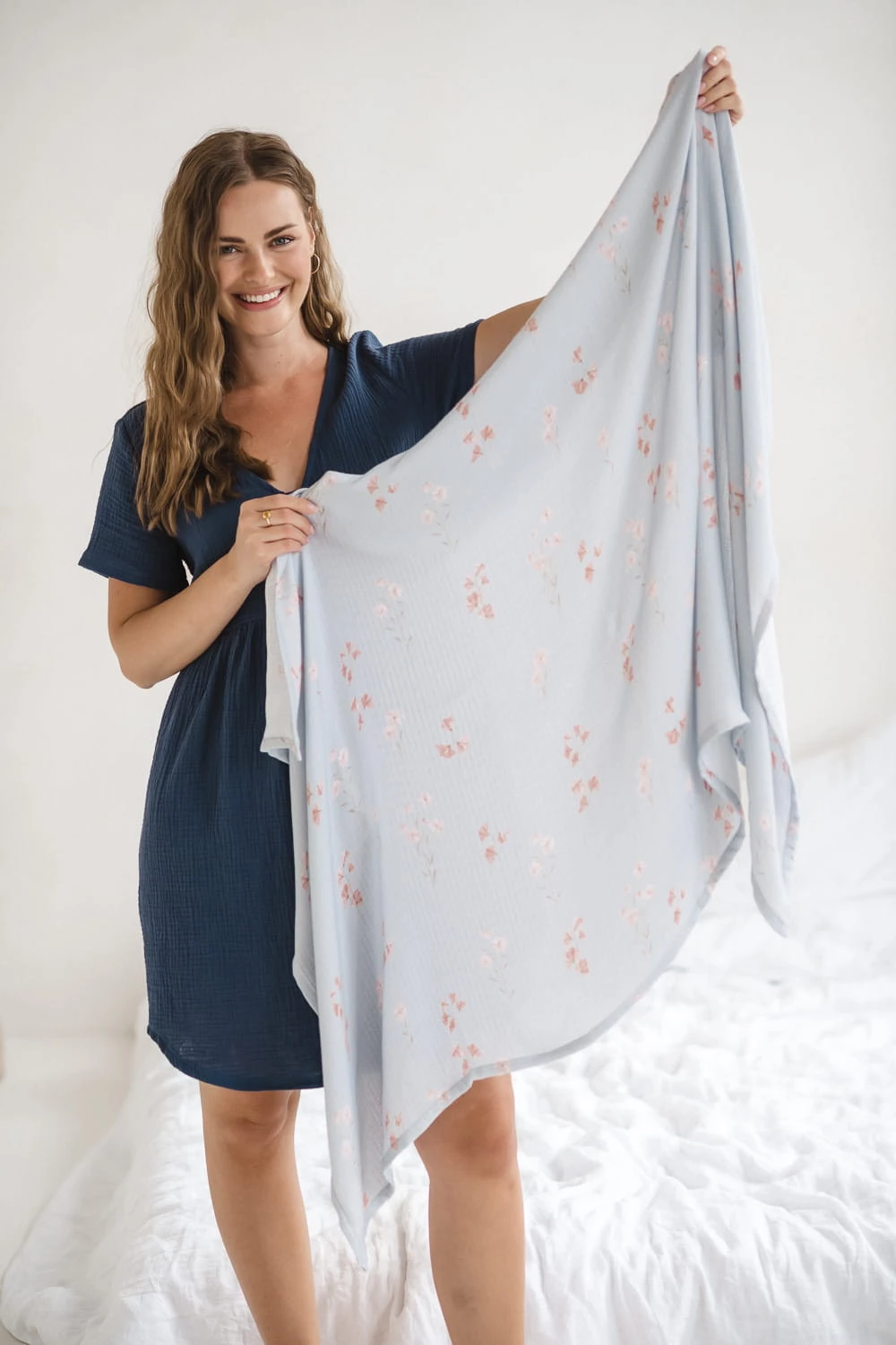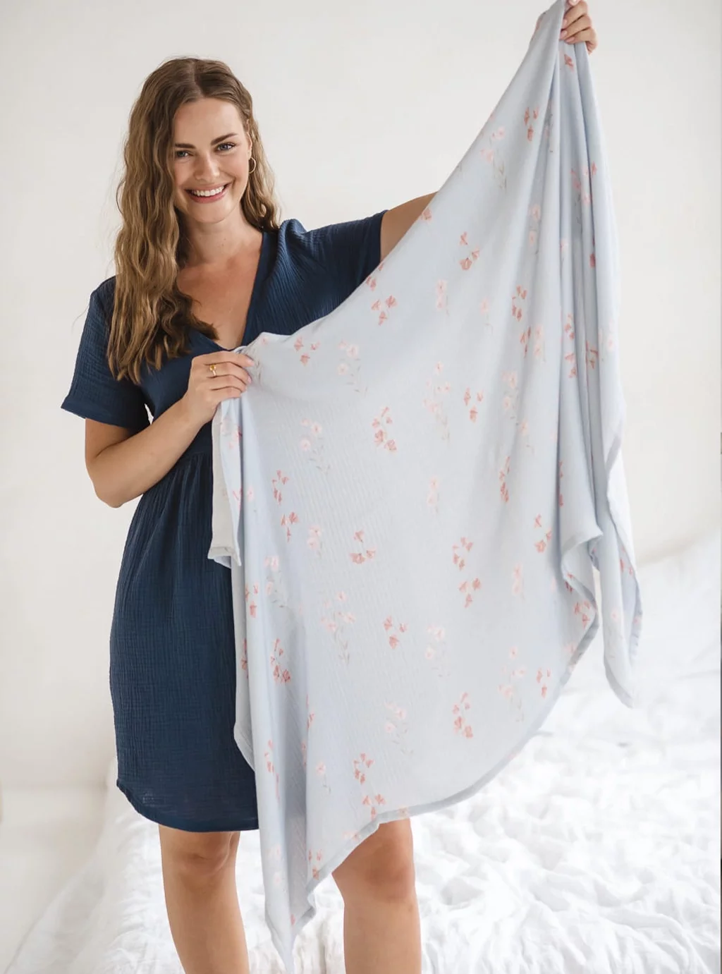 Stwórz zgrany duet z maluchem – dobierz do otulacza szlafrok dla mamy w tym samym wzorze, by zachować spójność stylu na pierwszych wspólnych zdjęciach.