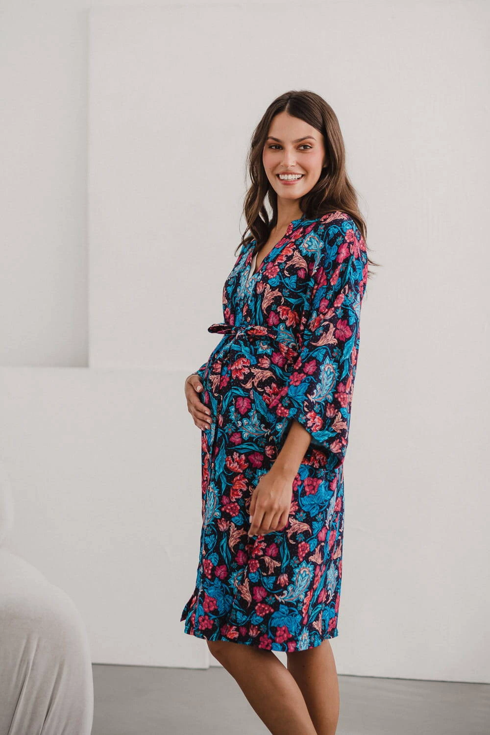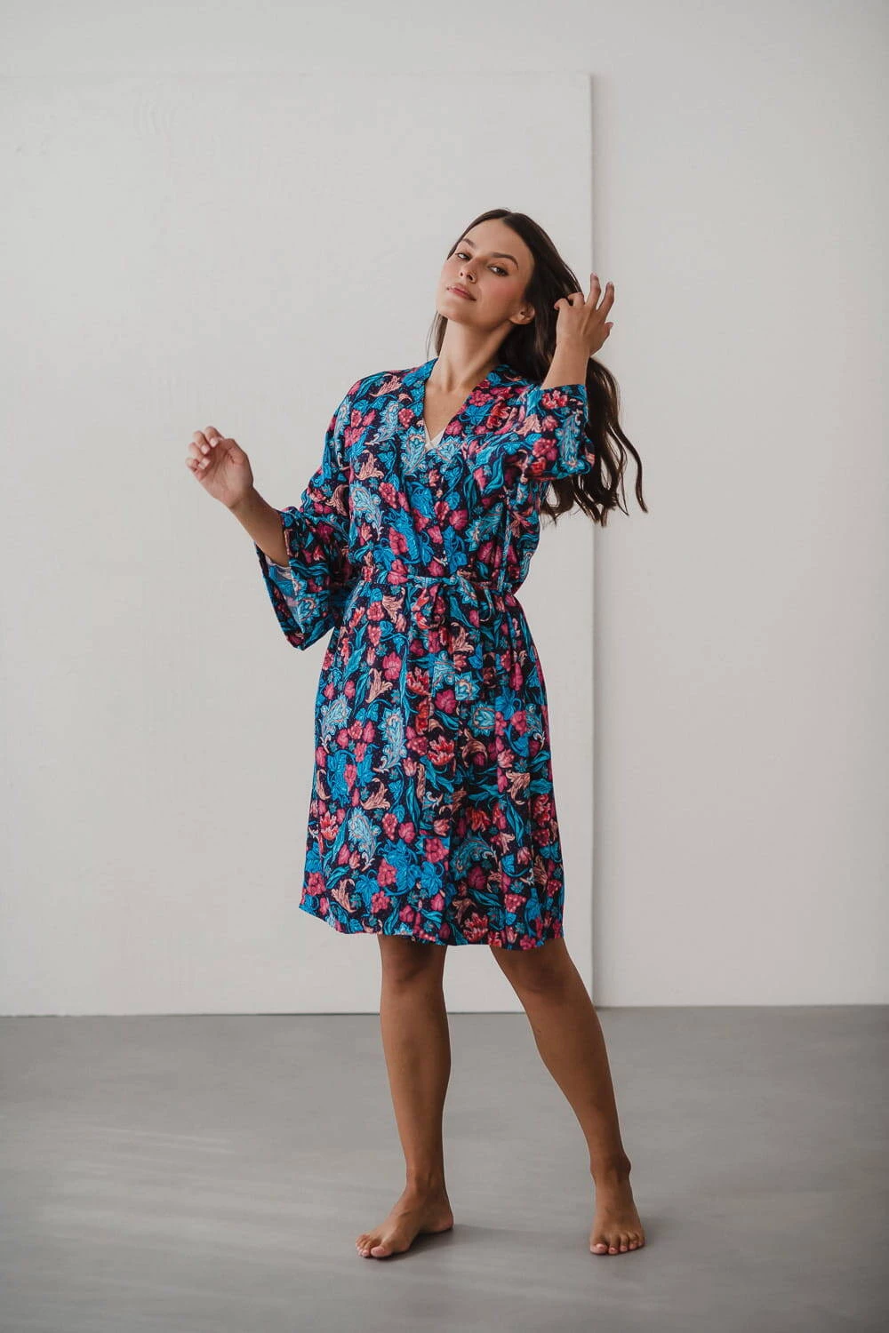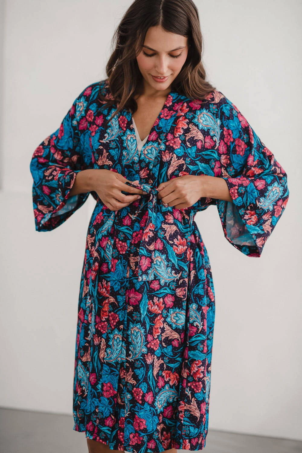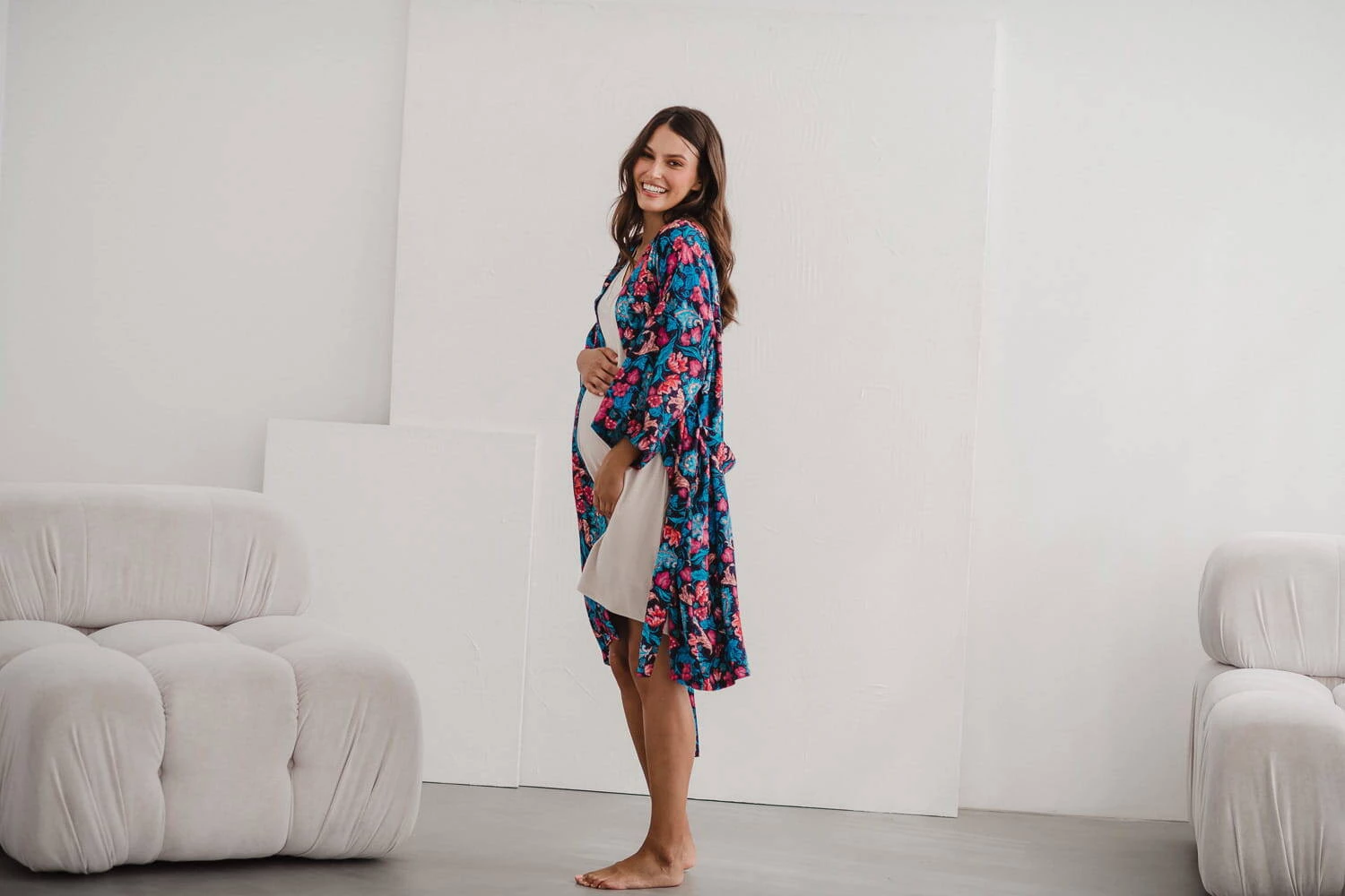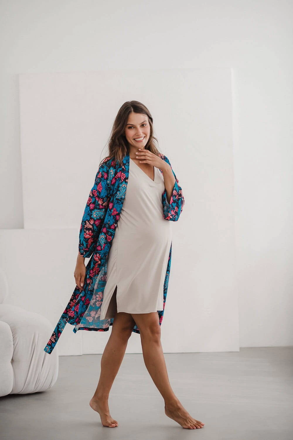 Przykuwający wzrok, ultra kobiecy wzór tego szlafroka pobudzi Twoje zmysły i dodatkowo doda energii, czyniąc każdy dzień oczekiwania na maleństwo jeszcze piękniejszym i bardziej komfortowym. Wygodne i stylowe szlafroki ciążowe w piękny design zostały zaprojektowane z myślą o Twoim komforcie nie tylko w okresie ciąży, ale też połogu i później. Ponieważ ten wyjątkowy szlafrok w barwne kwiaty o kroju kimono idealnie dopasowuje się do zmieniających się kształtów Twojego ciała, zapewniając odpowiednie dopasowanie na każdym etapie życia. Najwyższej jakości, naturalna tkanina została poddana rygorystycznym testom, aby zapewnić Tobie i maleństwu bezpieczeństwo i komfort w trakcie karmienia i użytkowania. Kobiece szlafroki do szpitala i na co dzień zostały uszyte w Polsce przez markę Milk & Love która jest bardzo ceniona przez kobiety w całej Europie.