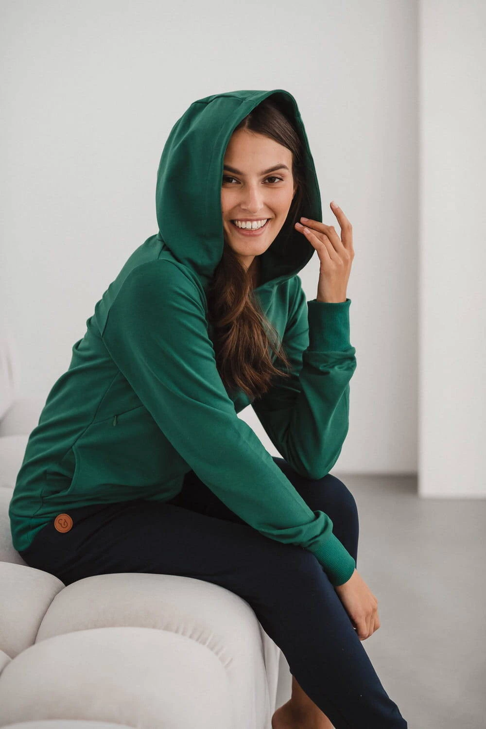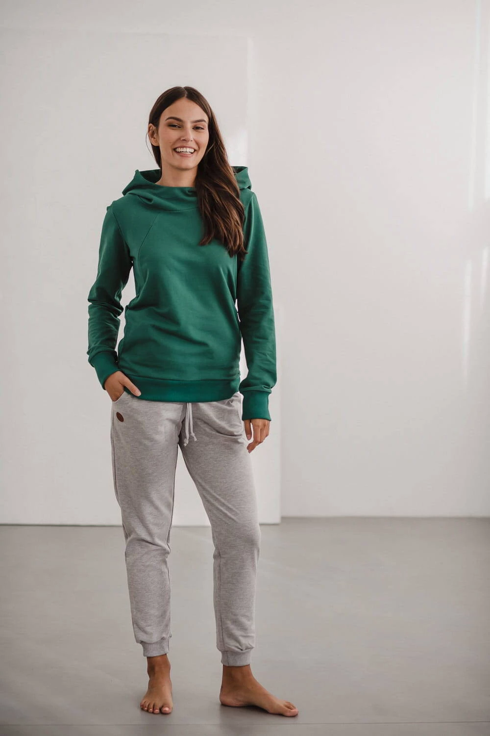 Bluza ciążowa do karmienia piersią to idealne rozwiązanie dla kobiet które lubią sportowy styl i wygodę. Jeśli stawiasz na wygodne wygodne karmienie piersią bluza do karmienia piersią w kolorze ślicznej zieleni to strzał w 10! Idealny model na chłodne dni, na jesienny spacer i komfortowe karmienie niezależnie od sytuacji w której dziecko jest głodne. Postaw na wygodny outfit i zainwestuj w bawełnianą bluzę która zostanie z Tobą również po ciąży ponieważ nasza bluza do karmienia nawet po wielokrotnym praniu pozostaje w niezmienionym kształcie i kolorze.