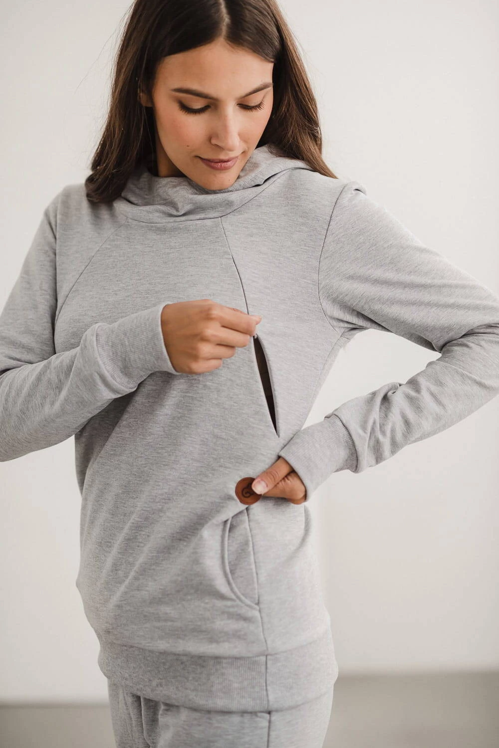 Bluza ciążowa i do karmienia piersią w kolorze szarym została stworzona dla Ciebie z myślą o wygodzie, funkcjonalności i świetnym wyglądzie niezależnie od trymestru ciążowego. Nasza bluza do karmienia piersią Milk Please to więcej niż tylko ubranie ciążowe - to poczucie miękkości i swobody, które towarzyszy Ci każdego dnia wspierając wygodne karmienie piersią. Bluza ciążowa do karmienia piersią posiada ukryte zamki, zapewniające dyskretne karmienie piersią nawet w miejscach publicznych. To niezwykłe ubranie ciążowe możesz nosić od początku w okresie ciąży, w trakcie karmienia i później. Bluza do karmienia piersią i dla ciężarnych jest tak komfortowa że pokochasz ją na dłużej, zwłaszcza wtedy gdy będziesz dochodzić do swojej figury sprzed ciąży.