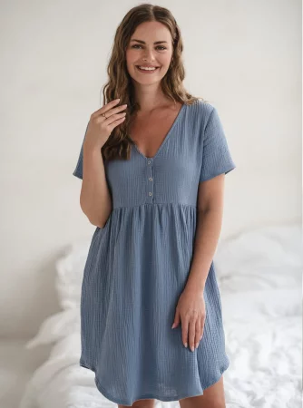 Muślinowa koszula nocna ciążowa do karmienia rozpinana Aurora błękitna