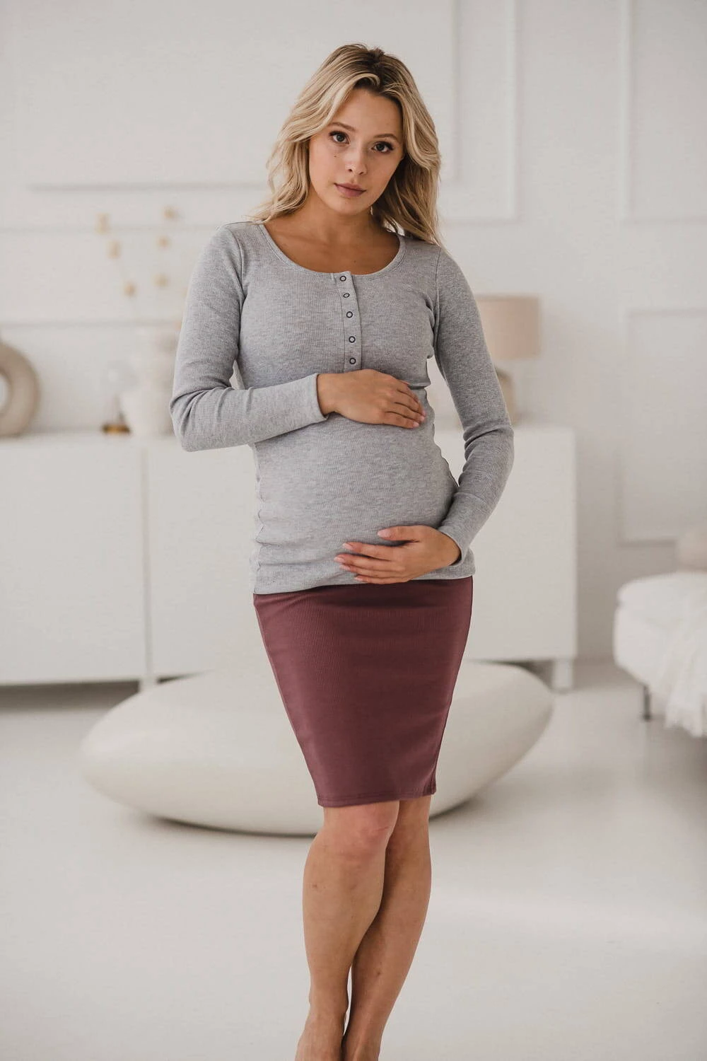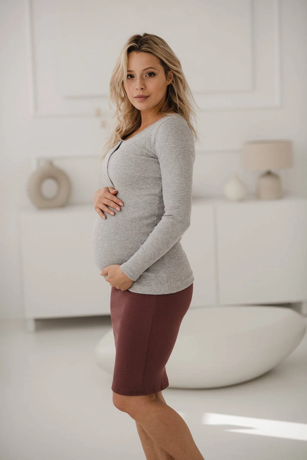 Bluzka ciążowa i do karmienia z dzianiny w prążek Tummy szara