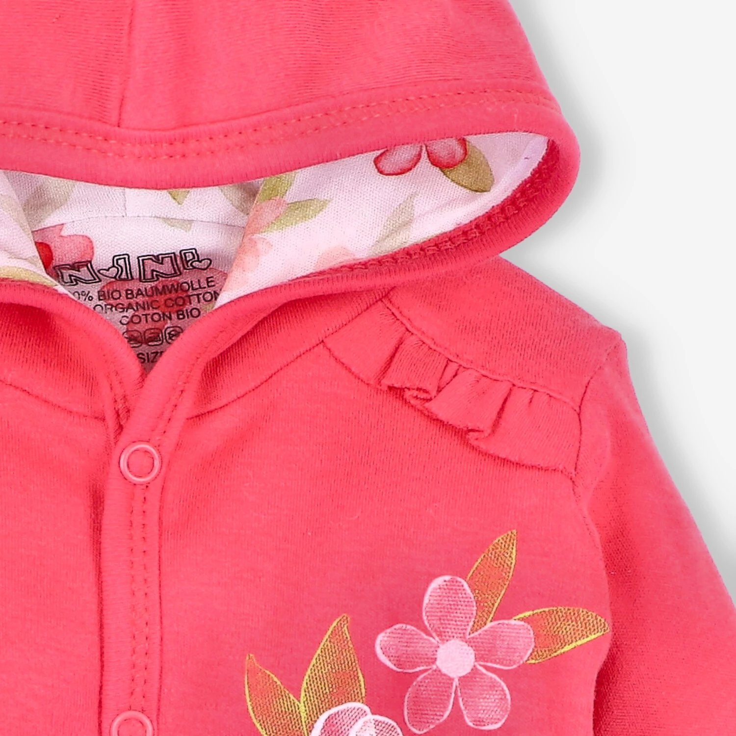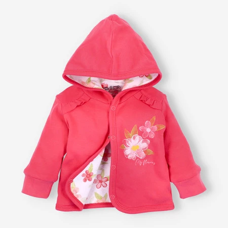 Dwuwarstwowa bluza niemowlęca z uroczym kapturkiem z kolekcji MAGIC GARDEN została zaprojektowana z myślą o delikatnej skórze dziecka. Uszyta w Polsce z wysokiej jakości, wyjątkowo przyjemnej w dotyku bawełny organicznej, która pochodzi z ekologicznych upraw.