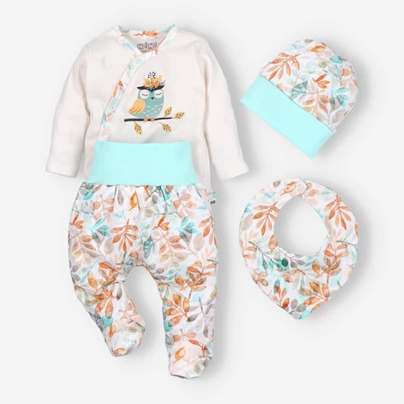 Komplet Niemowlęcy Kopertowy Z Bawełny Organicznej Sowa
