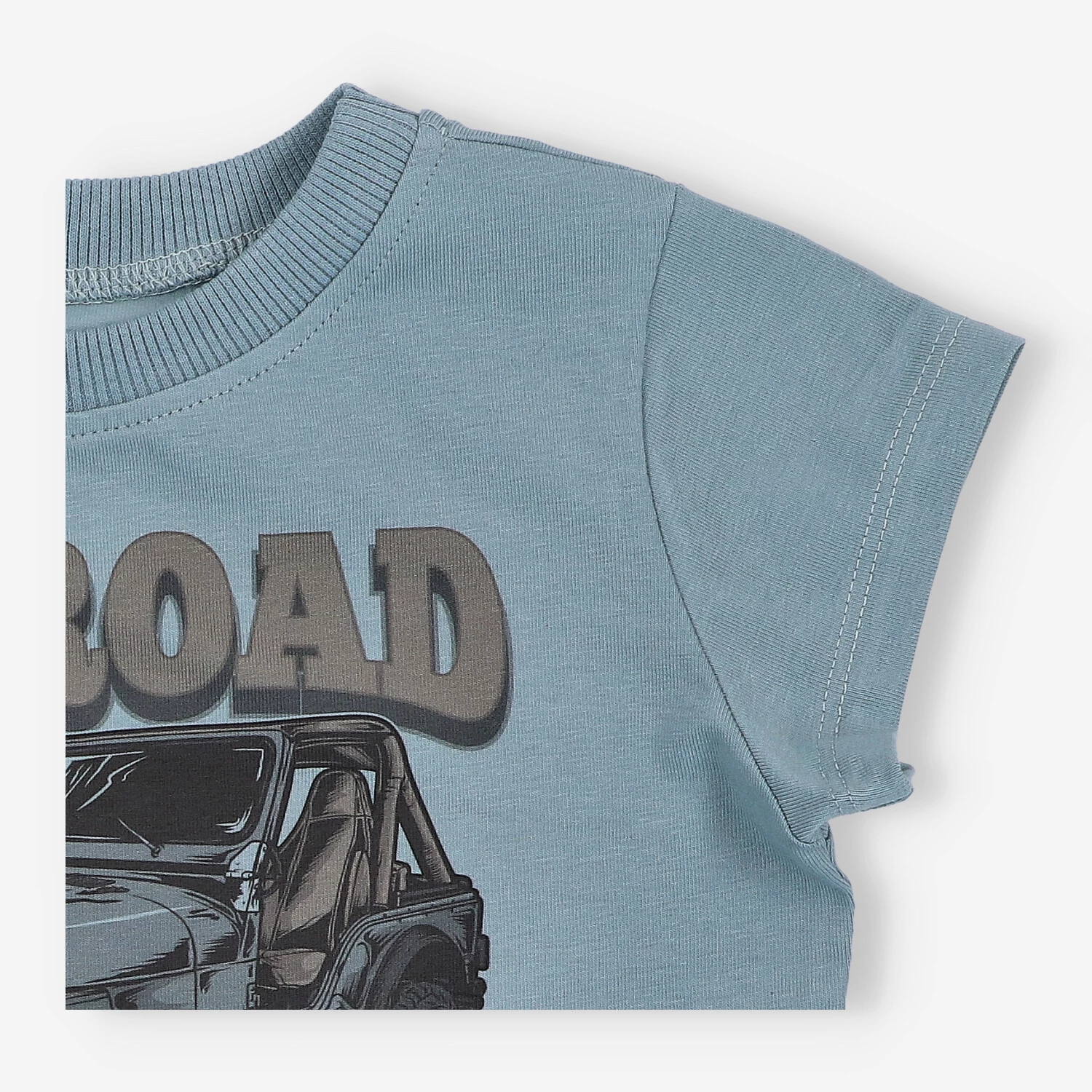 T-shirt chłopięcy z krótkim rękawem wyprodukowany z wysokiej jakości bawełny z dodatkiem elastanu. Pasuje zarówno do jeansów jak i spodni dresowych. Produkt uszyty w Polsce z dbałością o każdy szczegół i detal