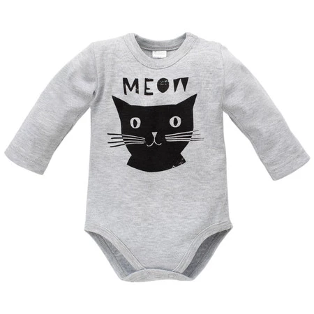 Uszyte z miękkiej, oddychającej bawełny Premium (100%), jest przyjazne dla delikatnej skóry dziecka, zapewniając wygodę oraz swobodę ruchów przez cały dzień. Szary kolor body został ozdobiony uroczą aplikacją kotka, która nadaje ubranku dziecięcego uroku. Body posiada miękką bawełnianą lamówkę oraz jest wciągane przez głowę, co ułatwia codzienne ubieranie, a bezpieczne, bezniklowe napy w kroku oraz na ramieniu pozwalają na szybkie przewijanie maluszka w każdej sytuacji.