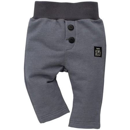 Odkryj mięciutkie spodnie dla niemowląt uszyte z bawełny 100%, które zapewniają komfort i swobodę ruchów Twojego dziecka każdego dnia. Klasyczny kolor szary doskonale pasuje do wielu stylizacji, a szeroki, elastyczny ściągacz w pasie sprawia, że ubranko idealnie przylega, nie uciskając brzuszka malucha.