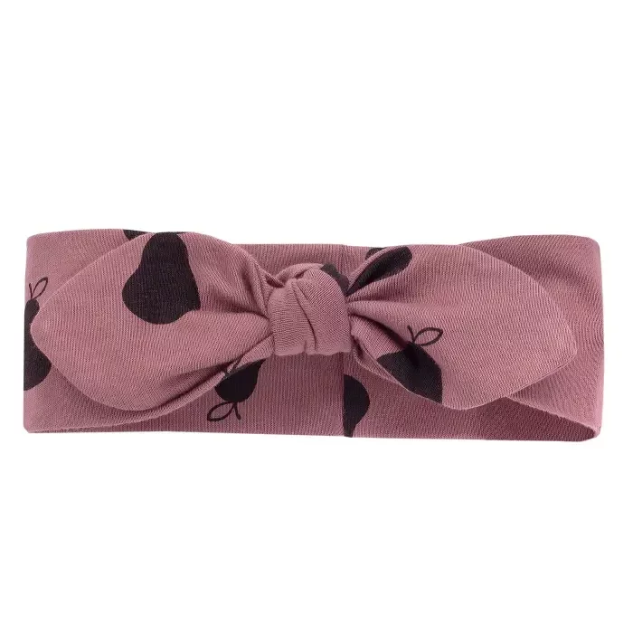 • Opaska dla dziewczynki różowa z kokardką we wzór gruszek – Kolekcja Tres Bien