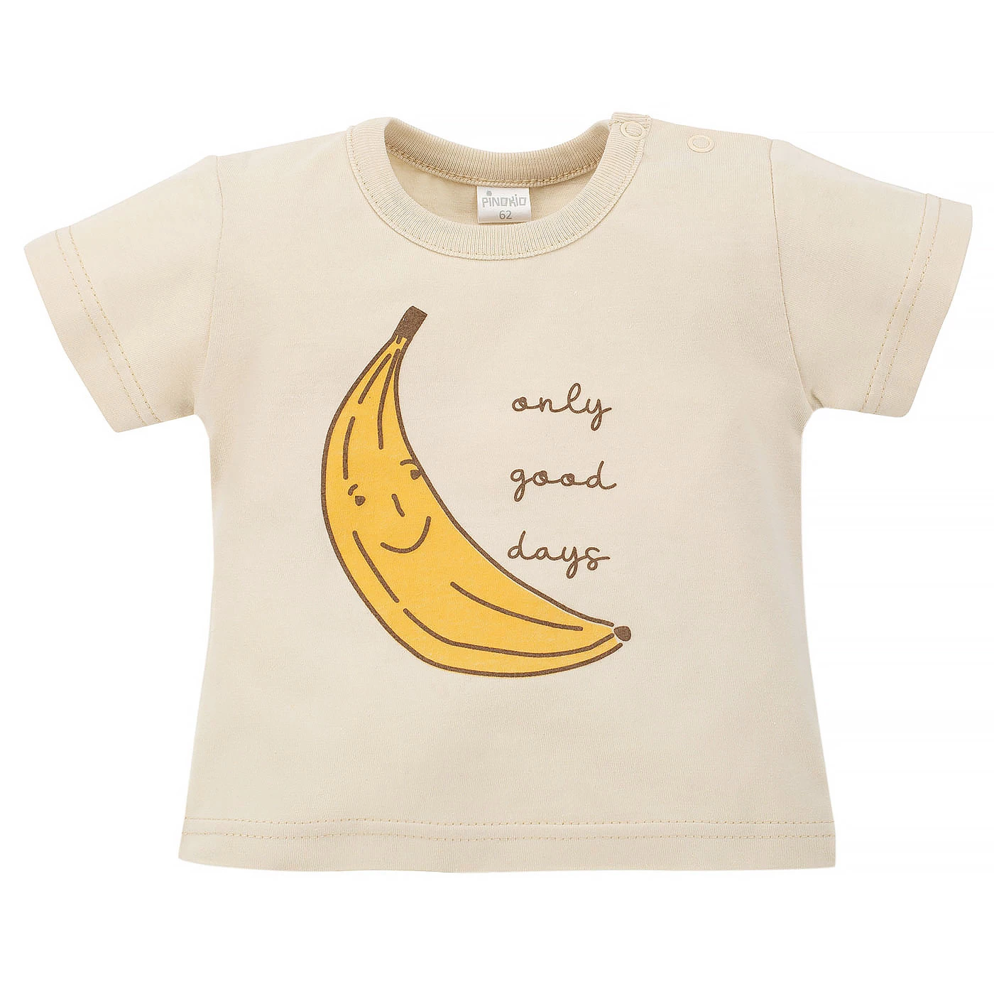 Urocza bluzka z krótkim rękawem z kolekcji Free Soul to idealny wybór na lato. Uszyta w 100% z przewiewnej, naturalnej bawełny, zapewnia dziecku pełen komfort i swobodę ruchów nawet w ciepłe dni. Jasnozielony kolor w połączeniu z radosnym nadrukiem przedstawiającym uśmiechniętego banana oraz napisem „only good days” nadaje ubranku wyjątkowo pozytywny charakter.