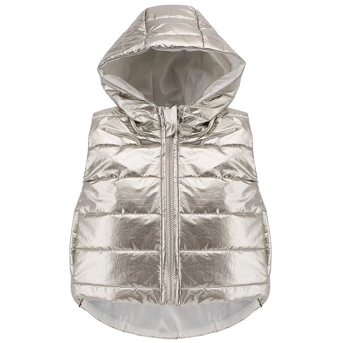 Bezrękawnik dziecięcy z kapturem z kolekcji Romantic to połączenie modnego wyglądu, wygody i funkcjonalności. Uszyty ze złotej, połyskującej tkaniny, prezentuje się wyjątkowo stylowo, a jednocześnie skutecznie chroni przed chłodem wiosną, jesienią i w chłodniejsze letnie dni.